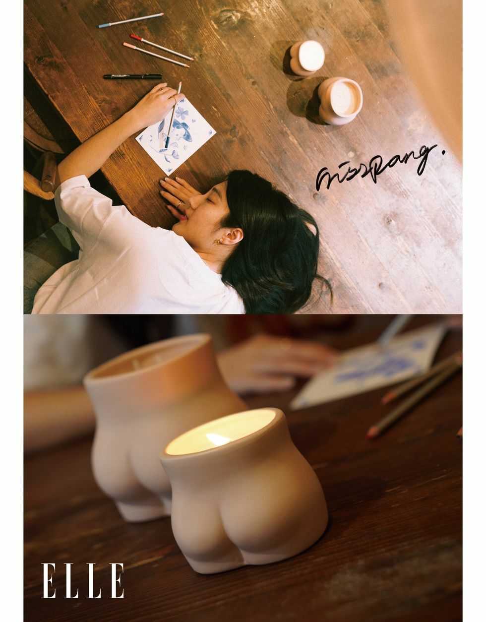 成名給了她更多物質餘裕,也難以避免地要犧牲掉真正自己創作的時間,「案子畢竟是以別人的視角出發,我還是畫得很開心,但比較沒有我自己生活的感覺,就會覺得『不是我』。」很能理解地,凡從純創作走向商業創作,一定都將面臨作品中有多少自我比例的拉扯,「有時候會覺得,也不是累,但我的靈感被掏空了,被所有的案子都已經掏完了,我自己創作已經沒有辦法再掏出東西的時候,就真的必須要休息。」因此她現在開始會傾聽心裡的聲音,即使看起來利益很大,如果心裡沒有「我想做」聲音出來,還是會選擇放手。我打趣地問她,那怎麼會想做我們的訪問?是否也希望讓更多人認識你呢?她說只因過去的合作很愉快(她曾和ELLEShop合作過幾次,包括商品與活動),「是不是可以被看見」也就是後面的「利益」這件事,如上所言,並非她接工作的決定性因素。