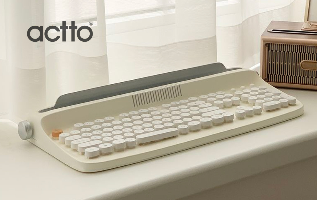 來自韓國的 actto 復古打字機鍵盤 - 是鍵盤,也是妝點空間的魔法。 「家」和「辦公室」,是人們待最久的兩個地方,試著在這些一成不變的空間裡,增加一些色彩吧!
