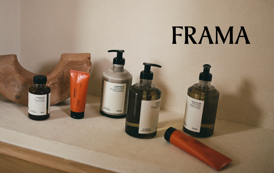 FRAMA 使⽤天然材料、簡單的幾何形狀和不妥協的品質,將美感與實⽤性結合,產⽣獨特的溫暖美學。保養全系列採⽤天然精選素材於哥本哈根製作⽽成,所有膚質皆適⽤。FRAMA 提供純淨、清爽、和具獨特的清香,有助於恢復⽪膚及感官的平衡;不僅淨化⾝體感官,並將永續精神融⼊品牌概念。