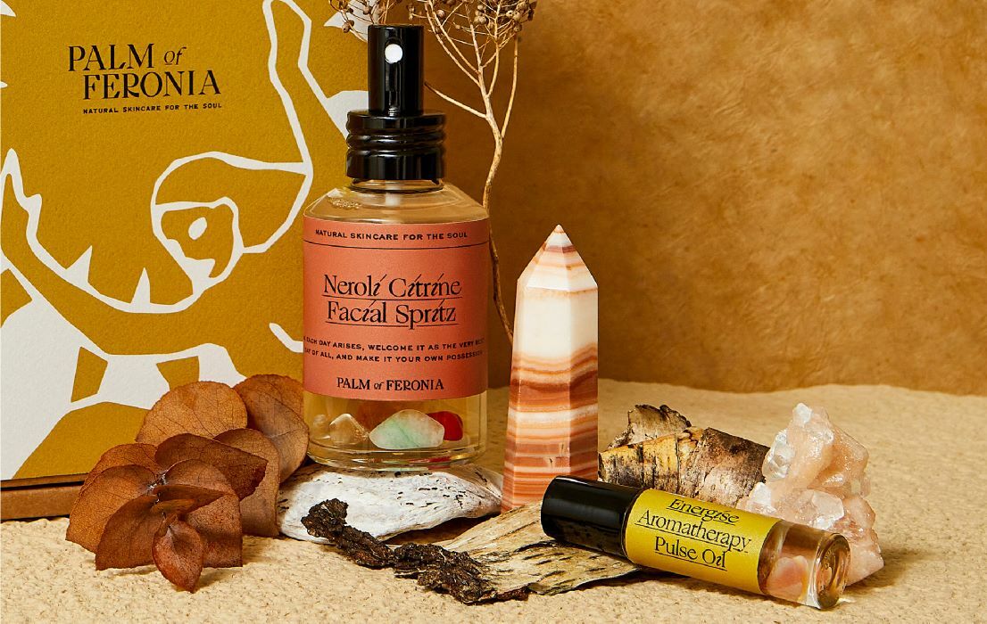 《PALM of FERONIA》中的Feronia意指為古羅馬掌管野生動植物、健康、作物豐收的女神。 選用天然有機成分,專助於古老的芳香療法與水晶能量。如同透過Feronia女神的雙手,小批量用心製作每一款商品,不僅為肌膚,也為情緒、身體、靈性健康給予最好的照顧。《PALM of FERONIA》挑選的每種油質、植物水或礦物質成分,皆經過精心選購,確保可持續性與效果。讓我們為肌膚花點時間,與大自然聯繫與探索。