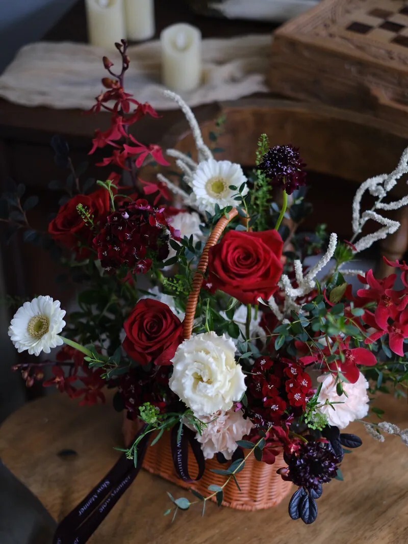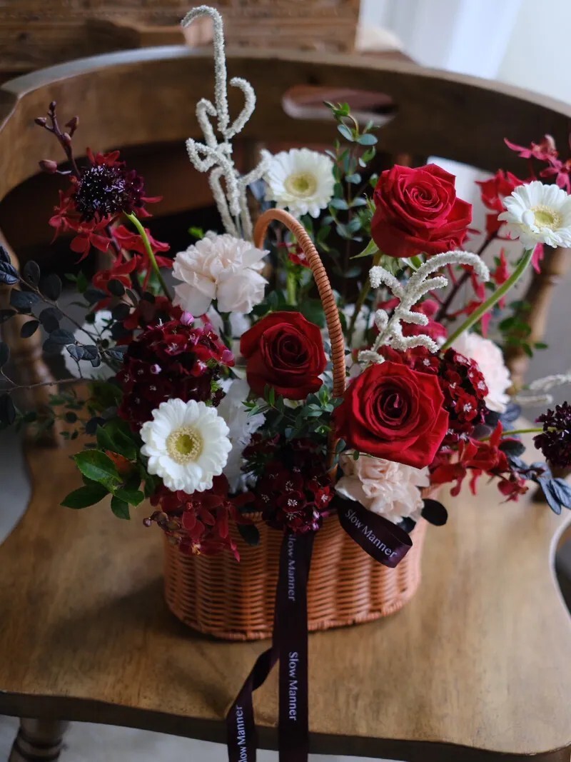 【情人節限定】慢式花藝-在盧森堡公園野餐|藤籃玫瑰花禮