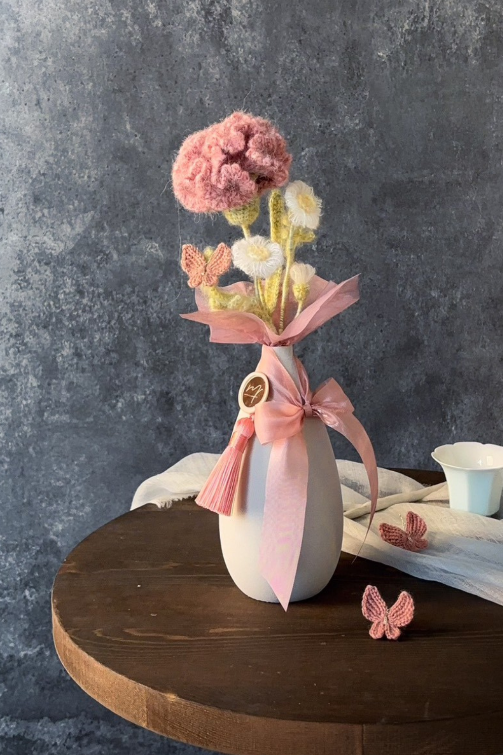 莫蘭迪粉調的康乃馨,顏色溫柔內斂,像晨光落在花瓣上