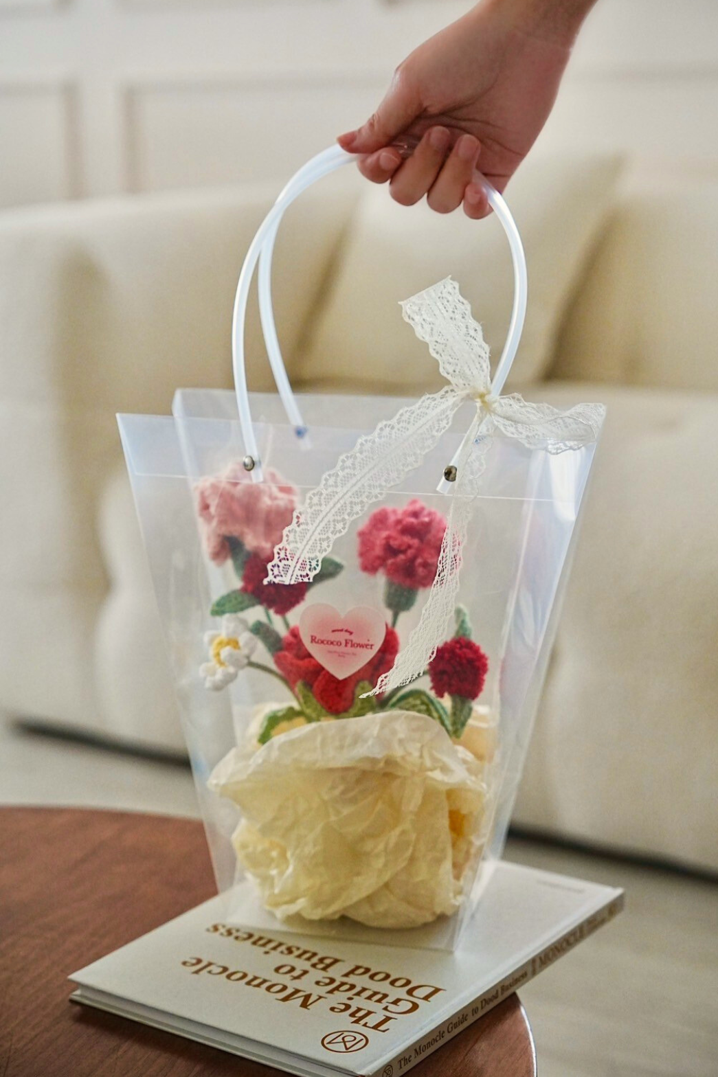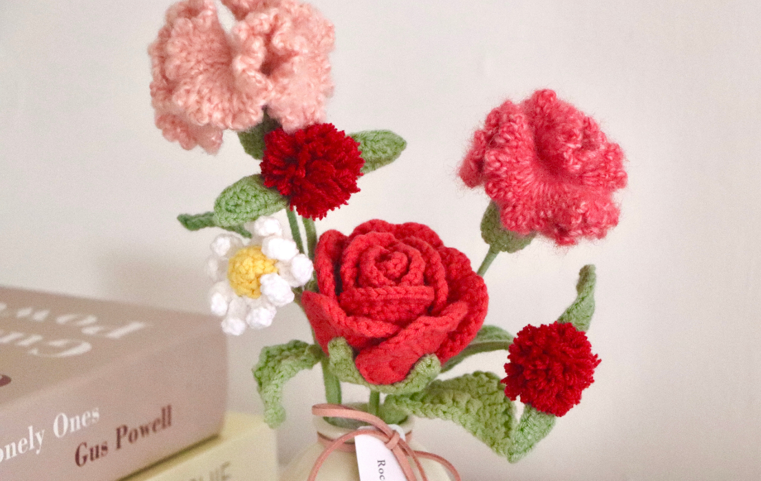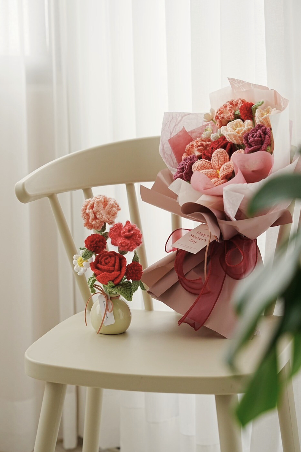 今年母親節,ELLE與網路人氣手工針織花工作室 Rococo Flower 獨家推出「康乃馨針織花禮」