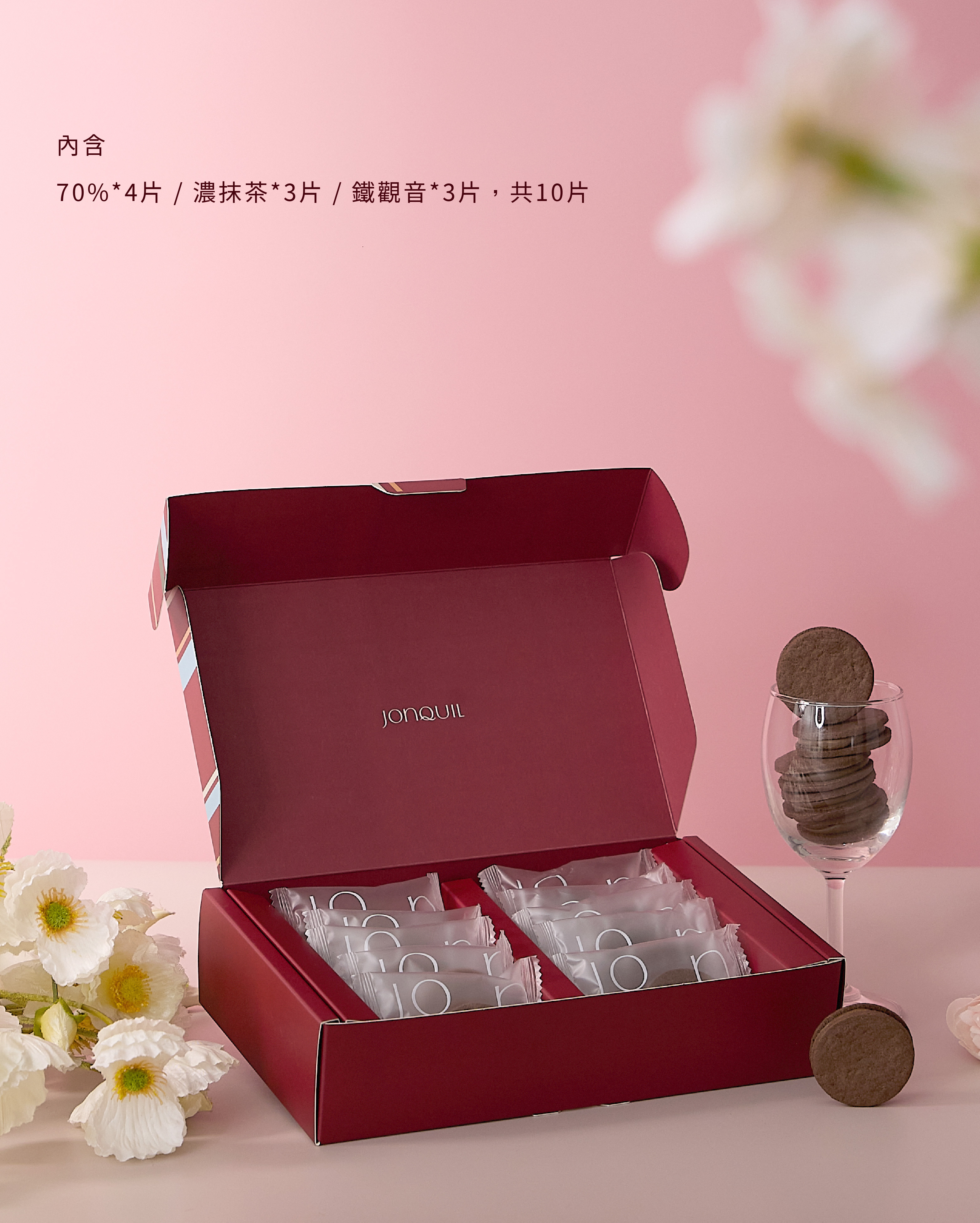 ・禮盒內容:70%醇厚可可 x4、鐵觀音醇厚可可 x3、濃醇抹茶 x3包,共10包