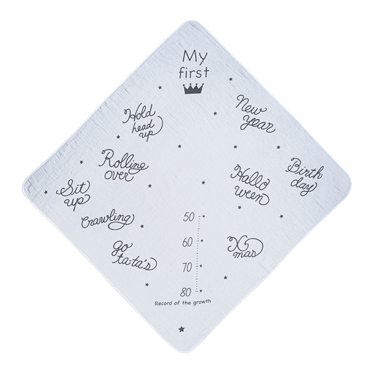 時刻紀錄寶寶每個珍貴的成長歷程 毛巾上有著每個重要的時刻書寫 讓您在每個紀念日有著更完美的寫真 Rolling over(翻身)Crawling(爬行)Sit up(學坐)Hold Hand up(抬頭)還有BirthDay以及X'mas 在寶寶頭部的位置有著皇冠,拍照起來就像個小公主/小王子一樣可愛,同時還能測量身高呦 一面是紗布材質,另一面是毛巾布材質,柔軟更吸水,方便媽咪交替使用。