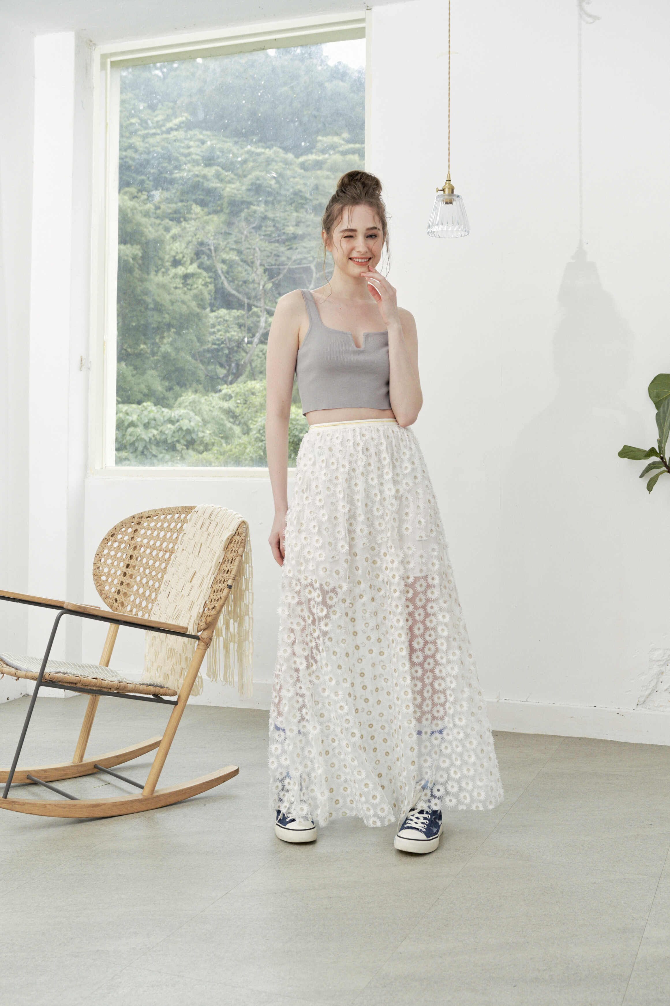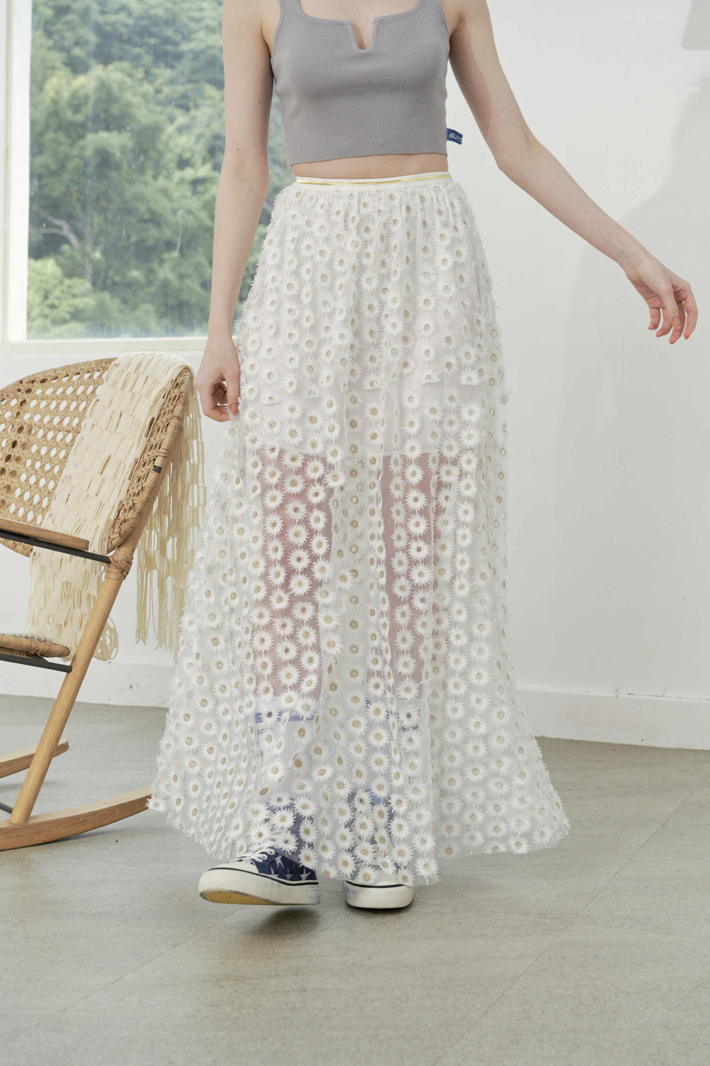 ●輕盈薄紗長裙,半截絲滑內裡,穿著舒適飄逸。