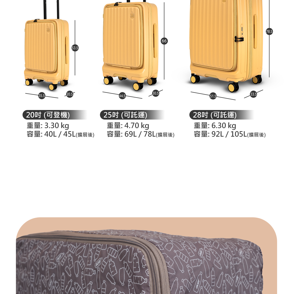 全新哥本哈根行李箱系列以這座北歐城市的迷人風景為色彩靈感,融合自然與都市之美。每一款色彩皆取自當地獨特景點:晨曦黃(Morning Sun)宛如初升陽光,溫暖而充滿希望;人魚粉(Mermaid Pink)源於著名雕像,浪漫夢幻如海風低語;杏仁奶白(Almond)映照古老建築的典雅與質樸;棕櫚綠(Palmehus Green)展現植物園的盎然綠意;暴雨鋒灰(Storm Gray)則捕捉北海風暴前的壯麗天際。這些色彩將哥本哈根的悠然氛圍展現得淋漓盡致,無論晴雨,皆能為旅程增添亮點。同時採用環保 rPET 材質,輕盈堅固,兼具時尚與實用,伴您探索世界並邁向永續未來。
