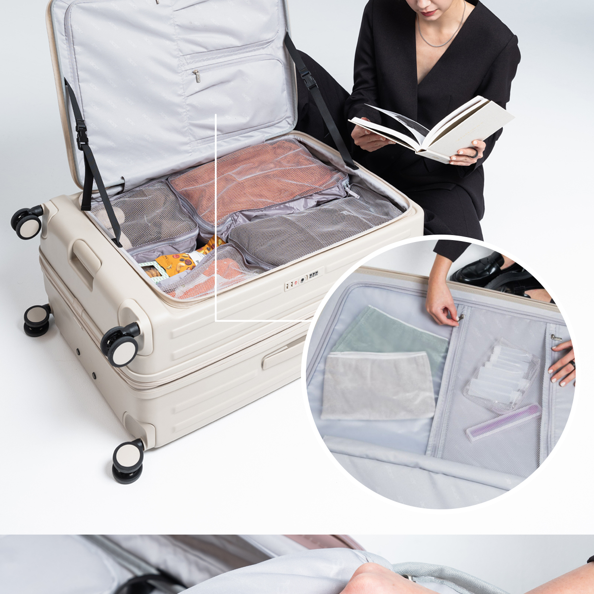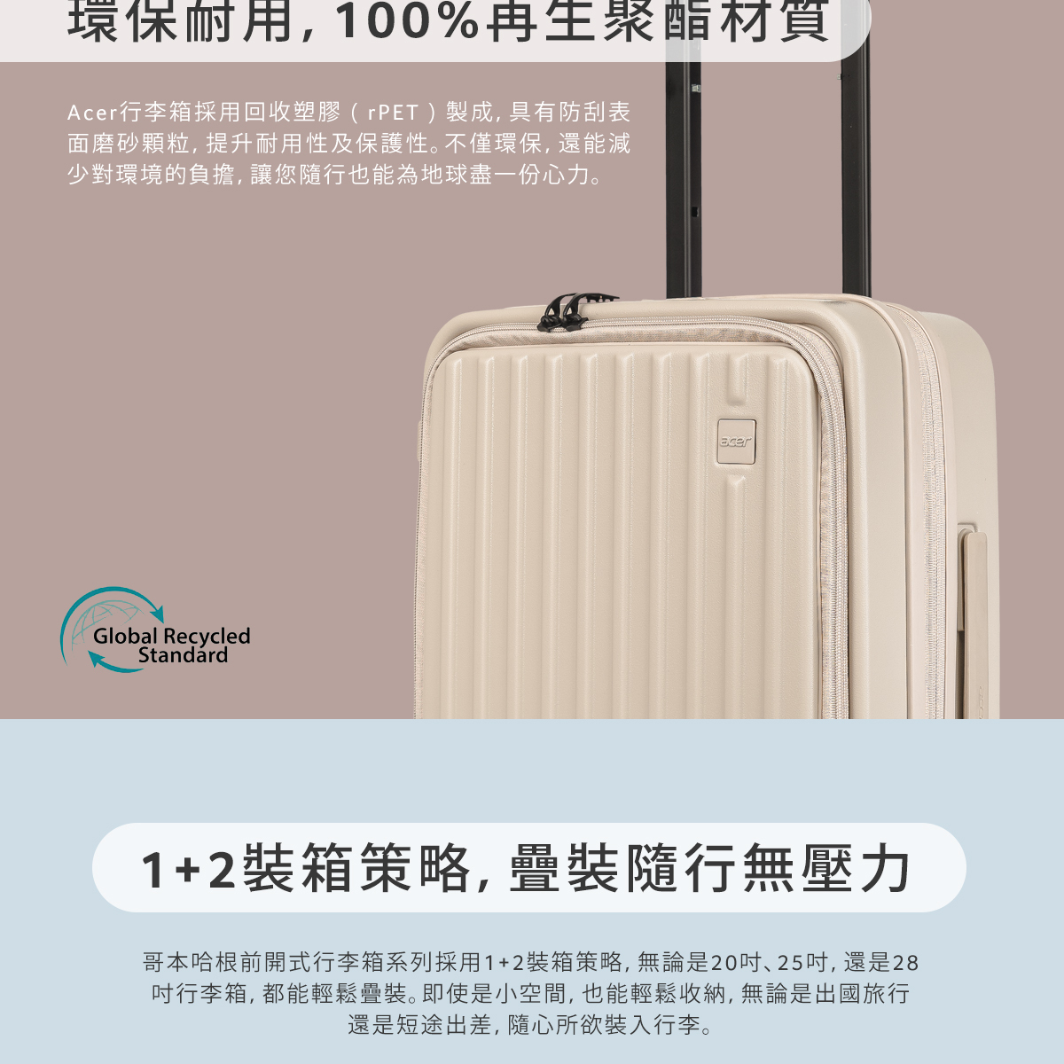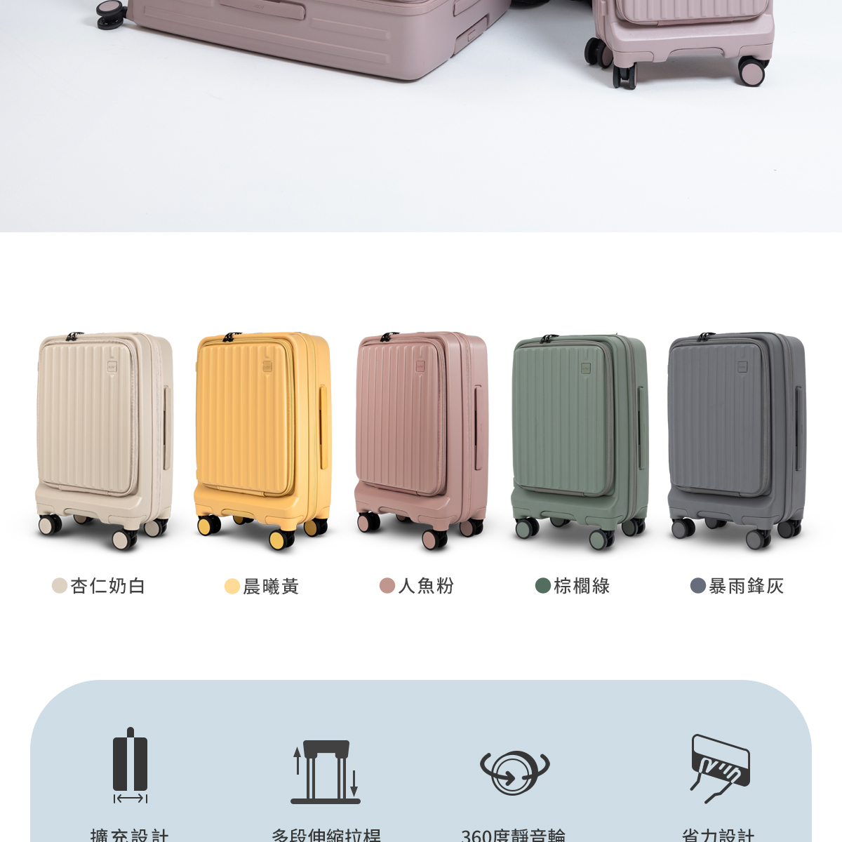 全新哥本哈根行李箱系列以這座北歐城市的迷人風景為色彩靈感,融合自然與都市之美。每一款色彩皆取自當地獨特景點:晨曦(Morning Sun)宛如初升陽光,溫暖而充滿希望;人魚粉(Mermaid Pink)源於著名雕像,浪漫夢幻如海風低語;杏仁奶白(Almond)映照古老建築的典雅與質樸;棕櫚綠(Palmehus Green)展現植物園的盎然綠意;暴雨鋒灰(Storm Gray)則捕捉北海風暴前的壯麗天際。這些色彩將哥本哈根的悠然氛圍展現得淋漓盡致,無論晴雨,皆能為旅程增添亮點。同時採用環保 rPET 材質,輕盈堅固,兼具時尚與實用,伴您探索世界並邁向永續未來。