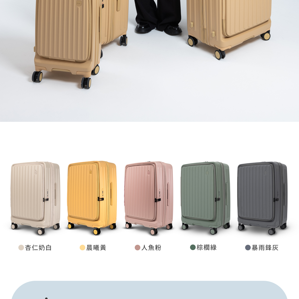 全新哥本哈根行李箱系列以這座北歐城市的迷人風景為色彩靈感,融合自然與都市之美。每一款色彩皆取自當地獨特景點:晨曦(Morning Sun)宛如初升陽光,溫暖而充滿希望;人魚粉(Mermaid Pink)源於著名雕像,浪漫夢幻如海風低語;杏仁奶白(Almond)映照古老建築的典雅與質樸;棕櫚綠(Palmehus Green)展現植物園的盎然綠意;暴雨鋒灰(Storm Gray)則捕捉北海風暴前的壯麗天際。這些色彩將哥本哈根的悠然氛圍展現得淋漓盡致,無論晴雨,皆能為旅程增添亮點。同時採用環保 rPET 材質,輕盈堅固,兼具時尚與實用,伴您探索世界並邁向永續未來。