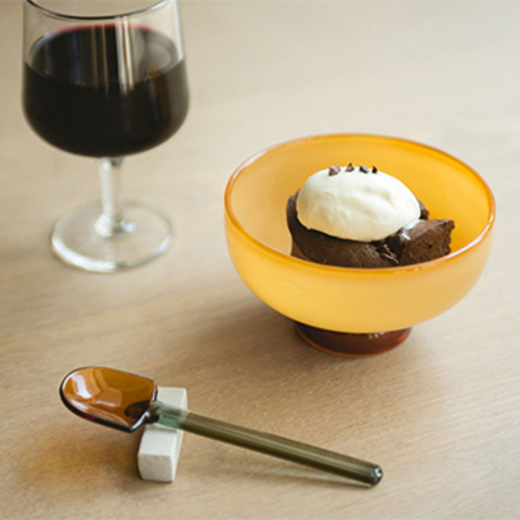 如同雪一般的碗形設計,再搭配同系列雙色玻璃匙,最適用於冰淇淋、果凍、布丁及水果等清涼點心,享受充滿懹舊復古風的悠閒時光。