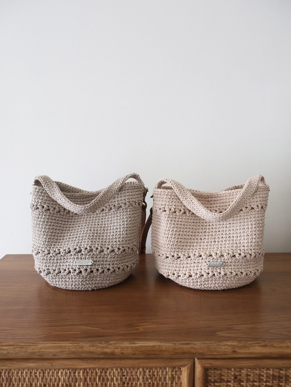 1.編織包因線材皆有彈性,製作時背帶長度及包包尺寸皆會刻意縮減,放入物品及使用幾次後即恢復正常長度,非瑕疵!