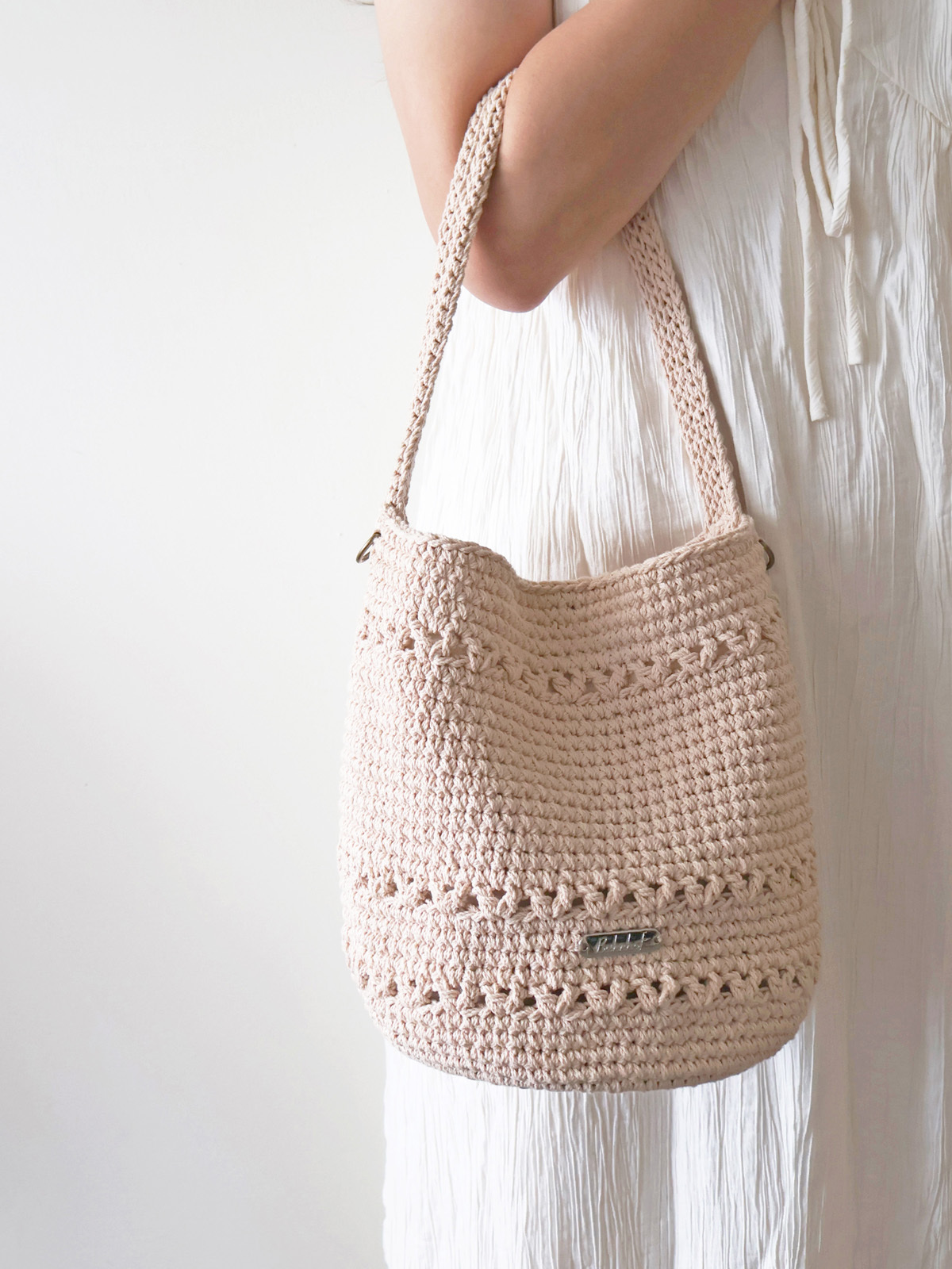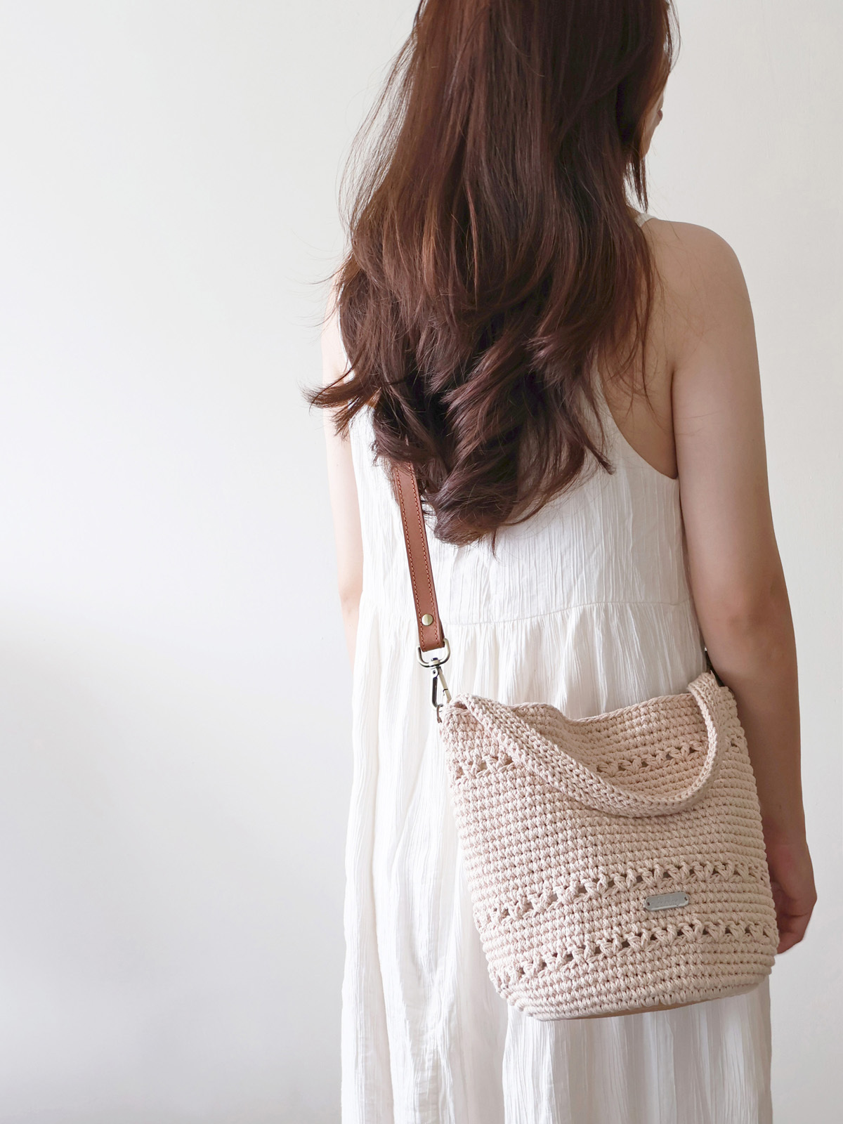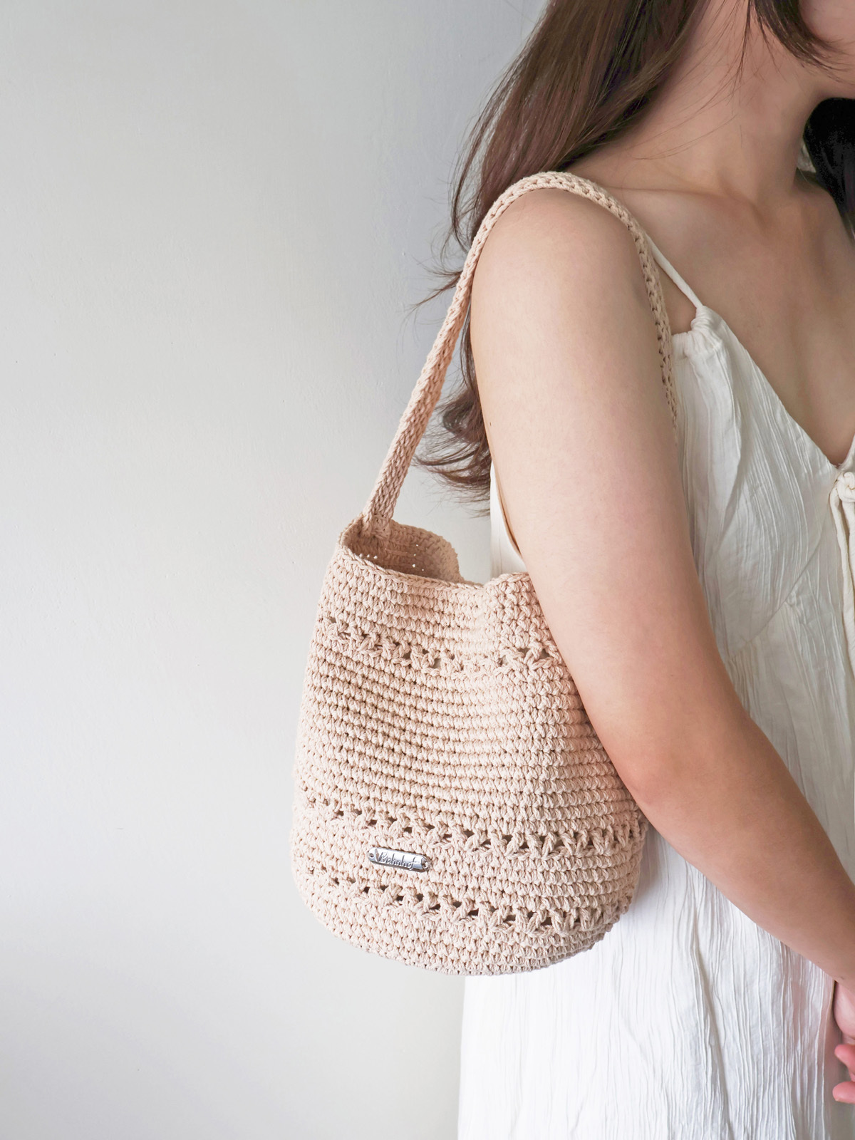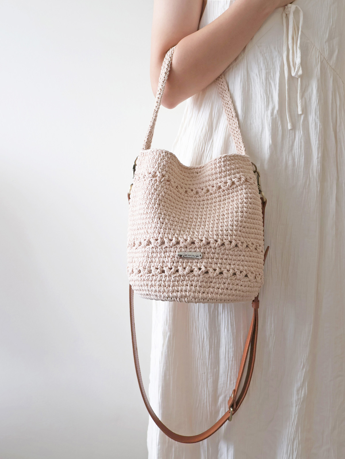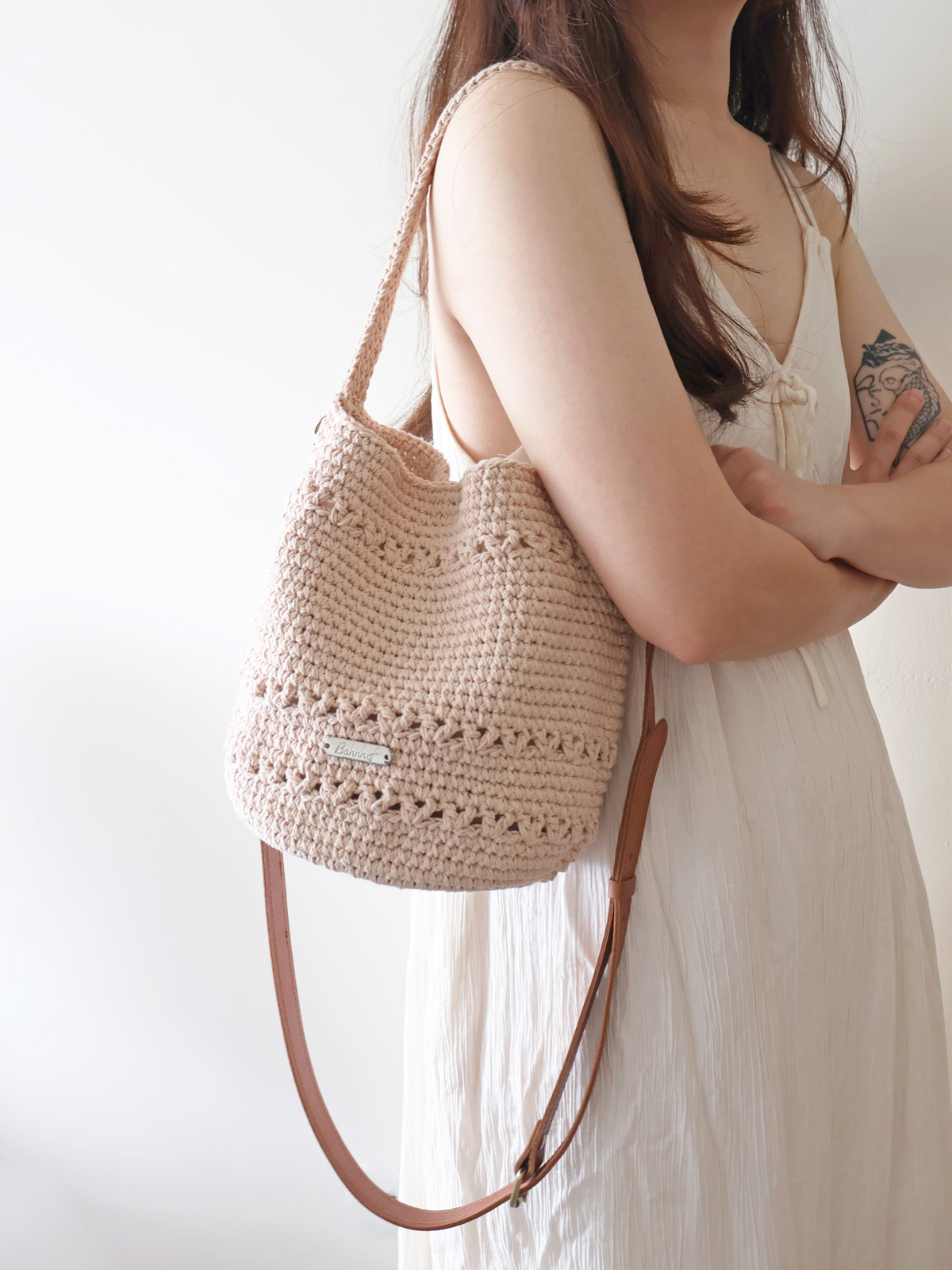 Bahnhof-微簍空經典兩用水桶包-燕麥 含內裏磁扣 肩背包 斜背包