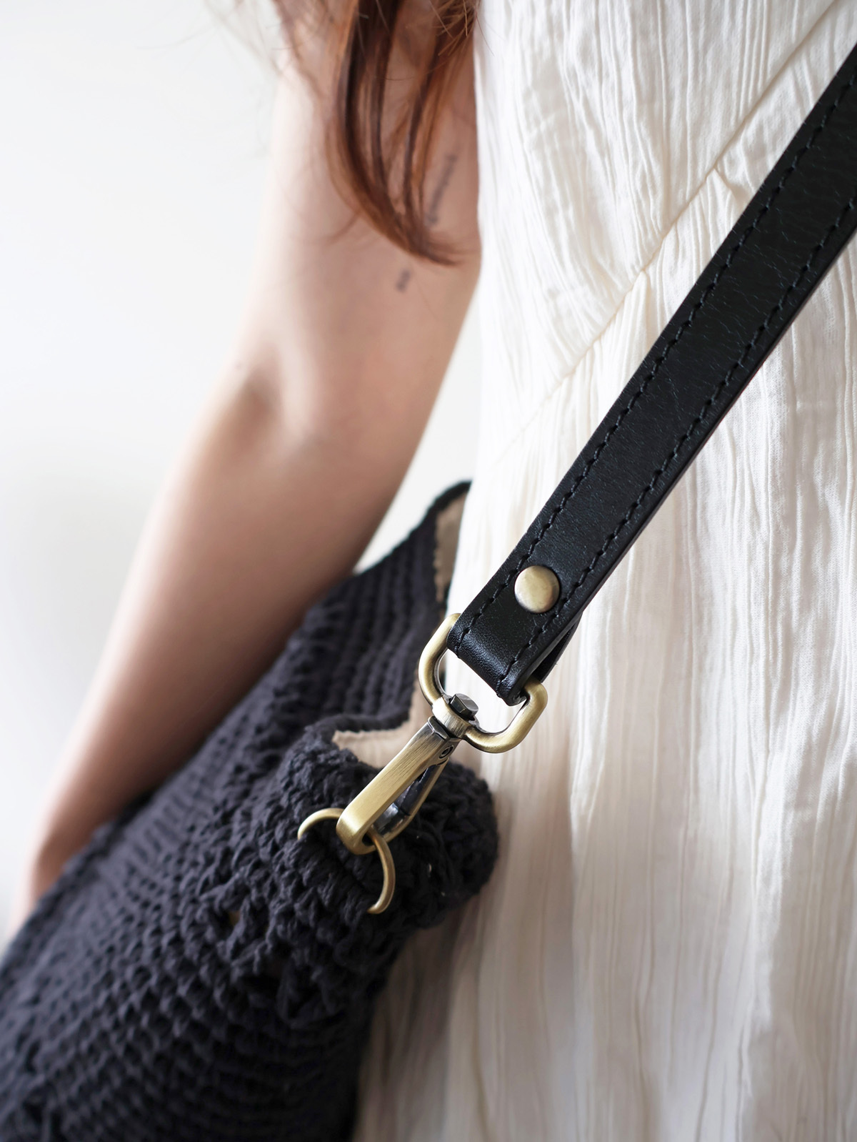 3.手工製作收線處可能因外力拉扯、彈性伸縮而使線頭跑出,此為正常現象不影響包包結構及使用,重新藏線即可。
