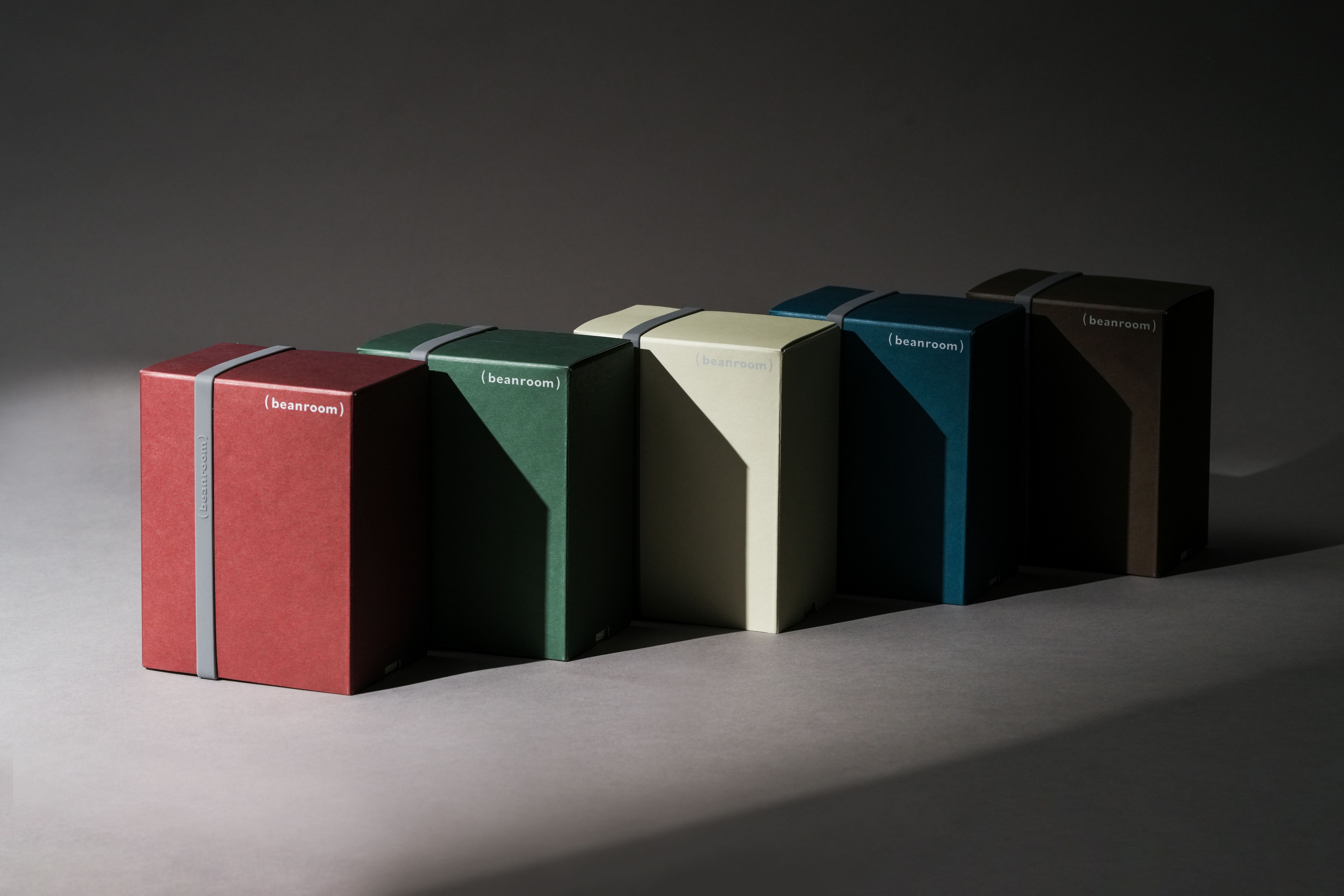 全系列共有五款配色,靜謐沉穩的色調呼應各款風味地景,展現獨特個性。外型簡潔俐落,搭配柔霧質感與橡膠束帶,體現 (beanroom) 一貫的設計語彙。無論節慶贈禮或日常心意,都能展現洗鍊品味。禮盒可重複作為文具或飾品收納盒使用,讓美感與永續並行,延續這份細緻而靜謐的美好。