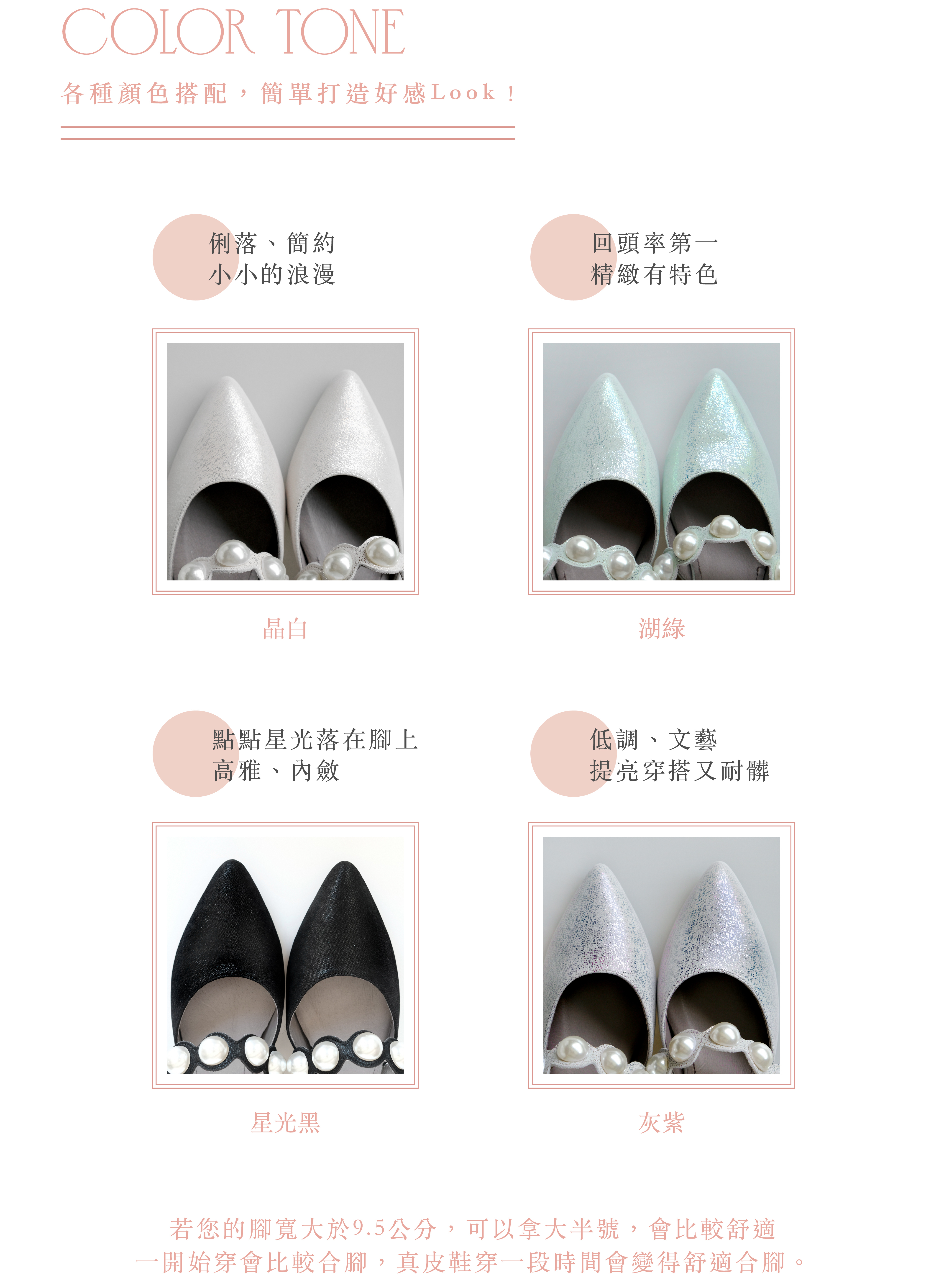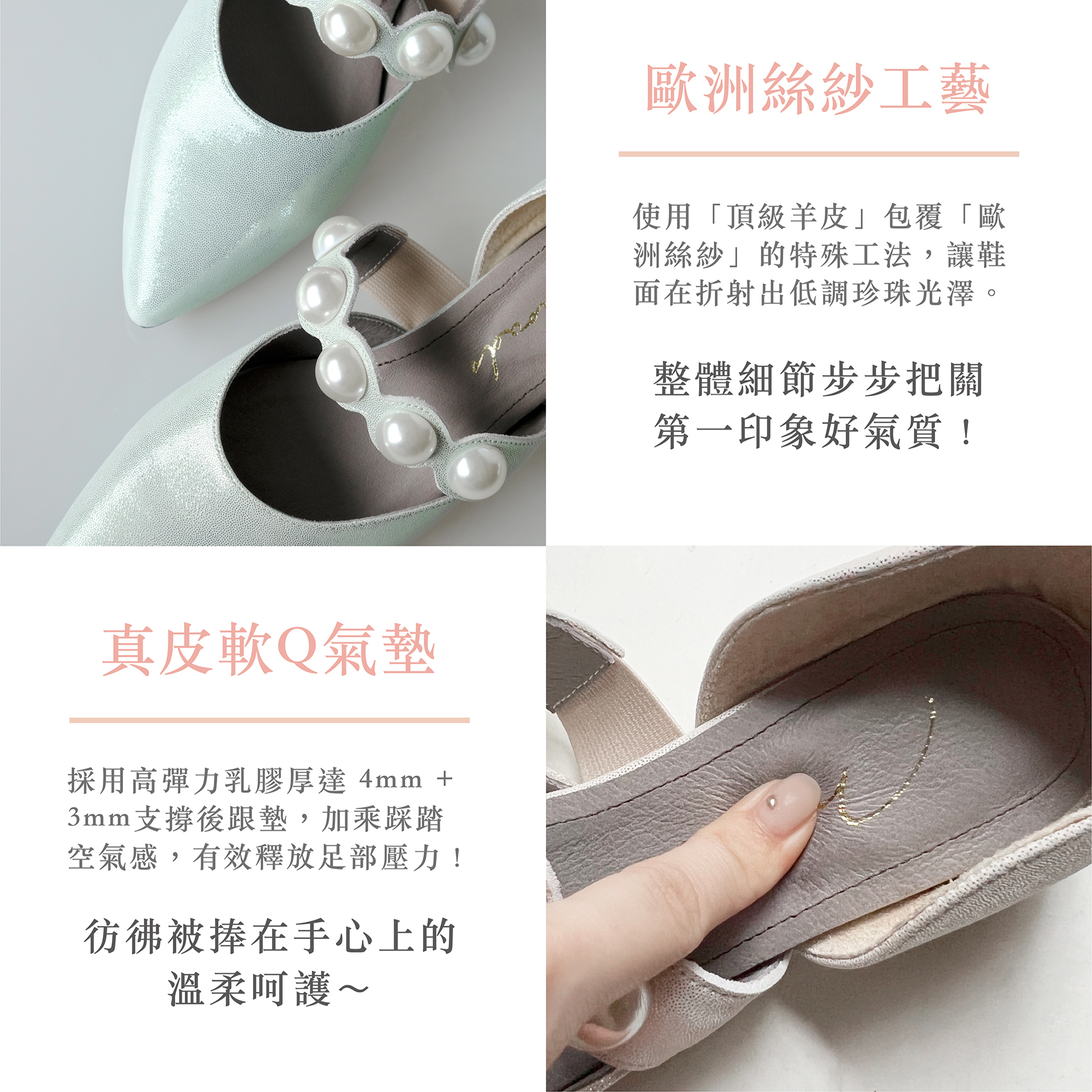 對於尋求非正統婚鞋的時尚新娘,「人魚公主」系列帶來了獨特之選。這款鞋使用頂級羊皮包覆歐洲絲紗,鞋面在不同光線下折射出低調的珍珠光澤,尖頭設計優雅拉長腿部線條。親膚真皮內裏及彈力氣墊提供全天候的舒適與透氣,讓每位新娘都能在特別的日子裡,輕鬆展現低調而優雅的風采。