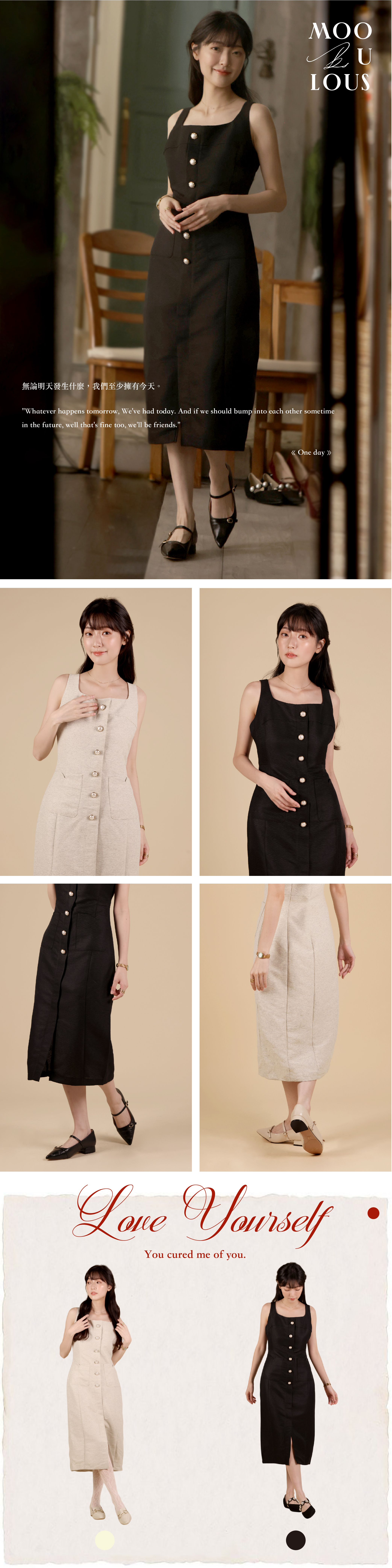 「珍珠排釦洋裝」選用厚磅特級布料,秋冬季節加內搭或外套時依然保暖透氣。精緻的腰線剪裁讓整體修身效果極佳,突顯女性優美曲線。珍珠排釦設計既高級又優雅,搭配方領剪裁露出大面積鎖骨和頸部,增添小臉效果。裙尾花苞剪裁修飾美臀曲線,口袋設計更是實用且時尚,輕鬆容納手機,為日常穿搭提供便利與美感的完美結合。