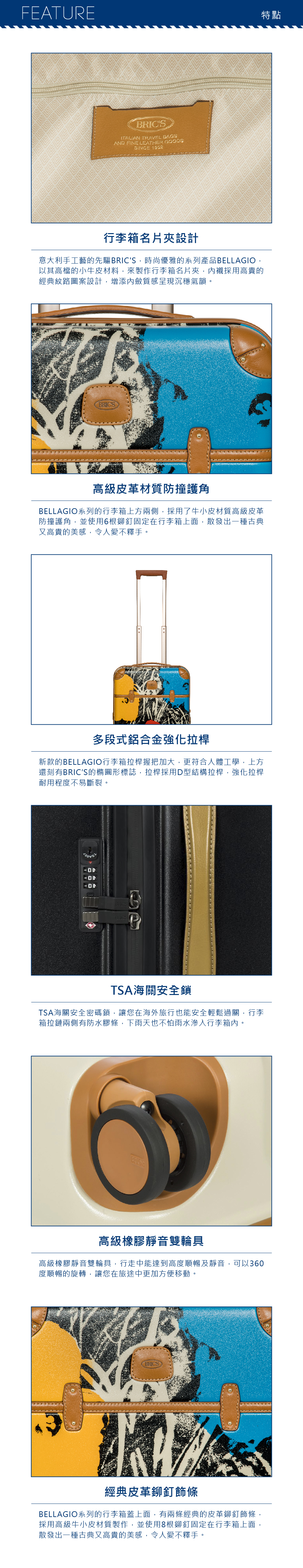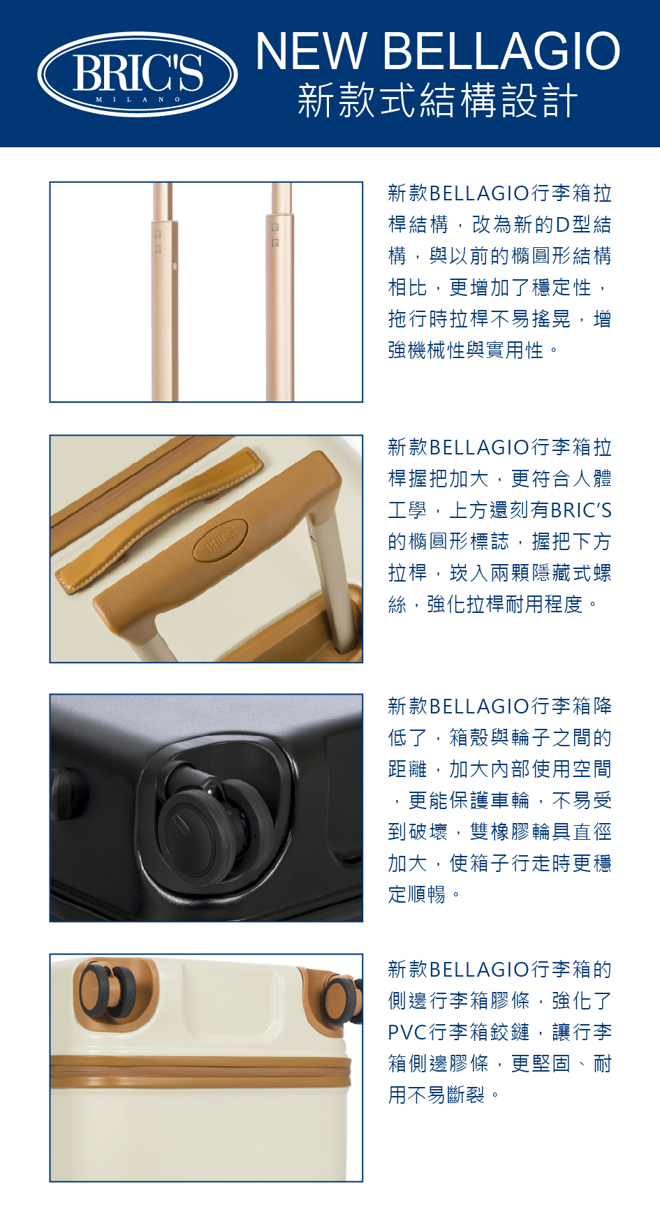 ◆ 義大利BRICS 的 BELLAGIO 系列旅行包/旅行箱材質為輕量堅固的德國拜耳 PC 配上義大利小牛皮