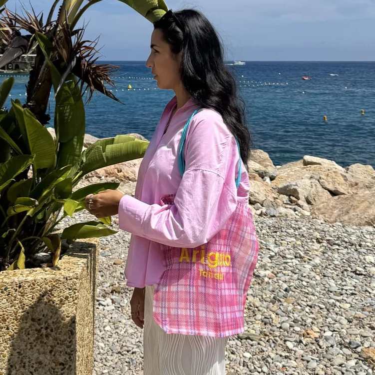 3. 將復古格紋融入法式標語,隨手一揹就是巴黎街頭風