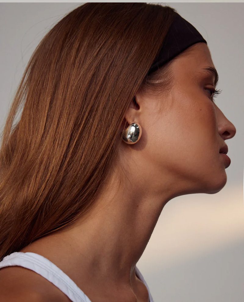 設計師將現代極簡與獨特造型完美融合,帶來視覺上的新鮮感。耳環的胖胖彎月形狀經過精心打磨,賦予了飽滿的立體感,整體的高光處理讓耳環在光線下散發出迷人的光澤,非常時髦有型