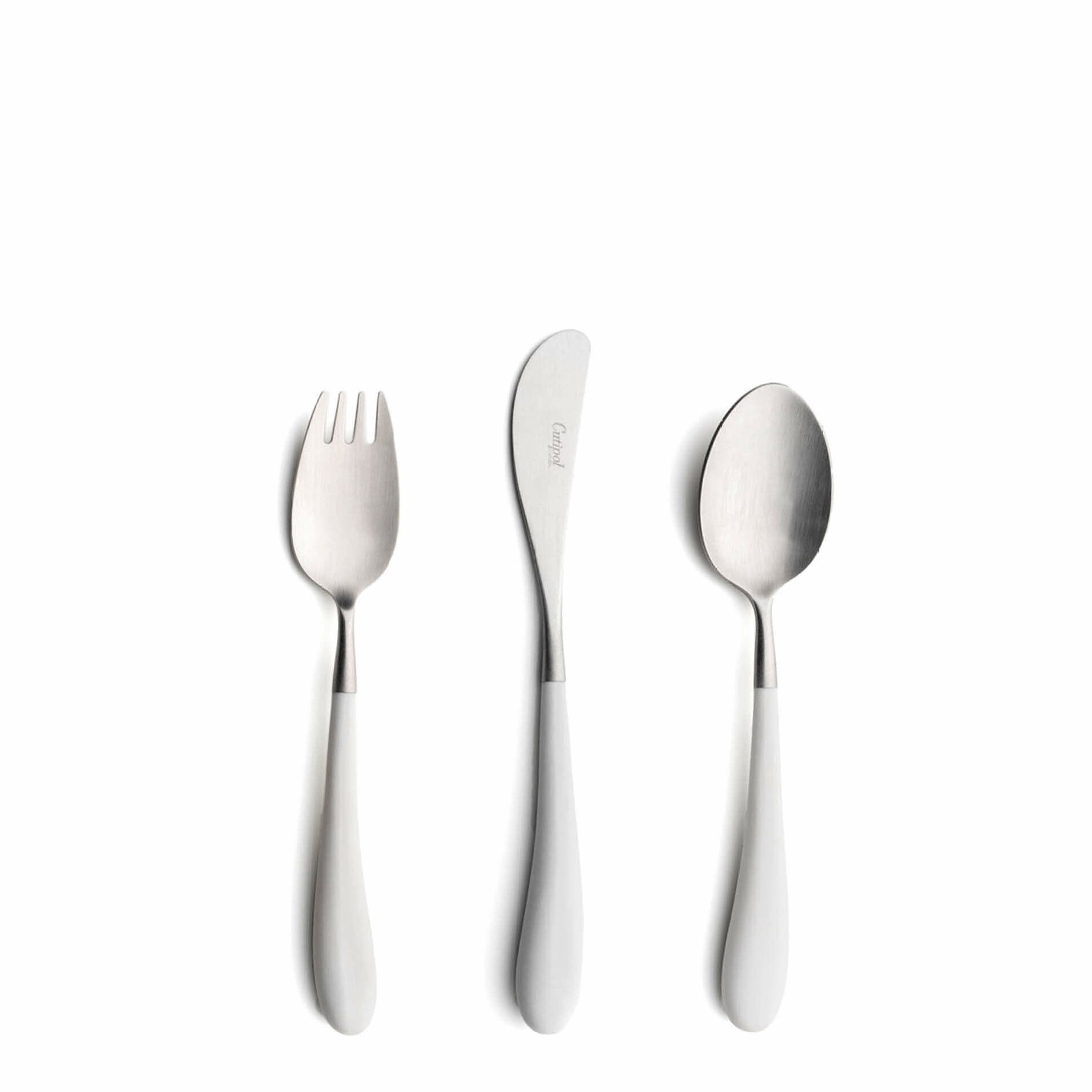 握柄也使用可愛且典雅的顏色,並製作成小孩好握取的舒適圓弧外型,刀叉更設計成安全且好拾取食物的弧度,