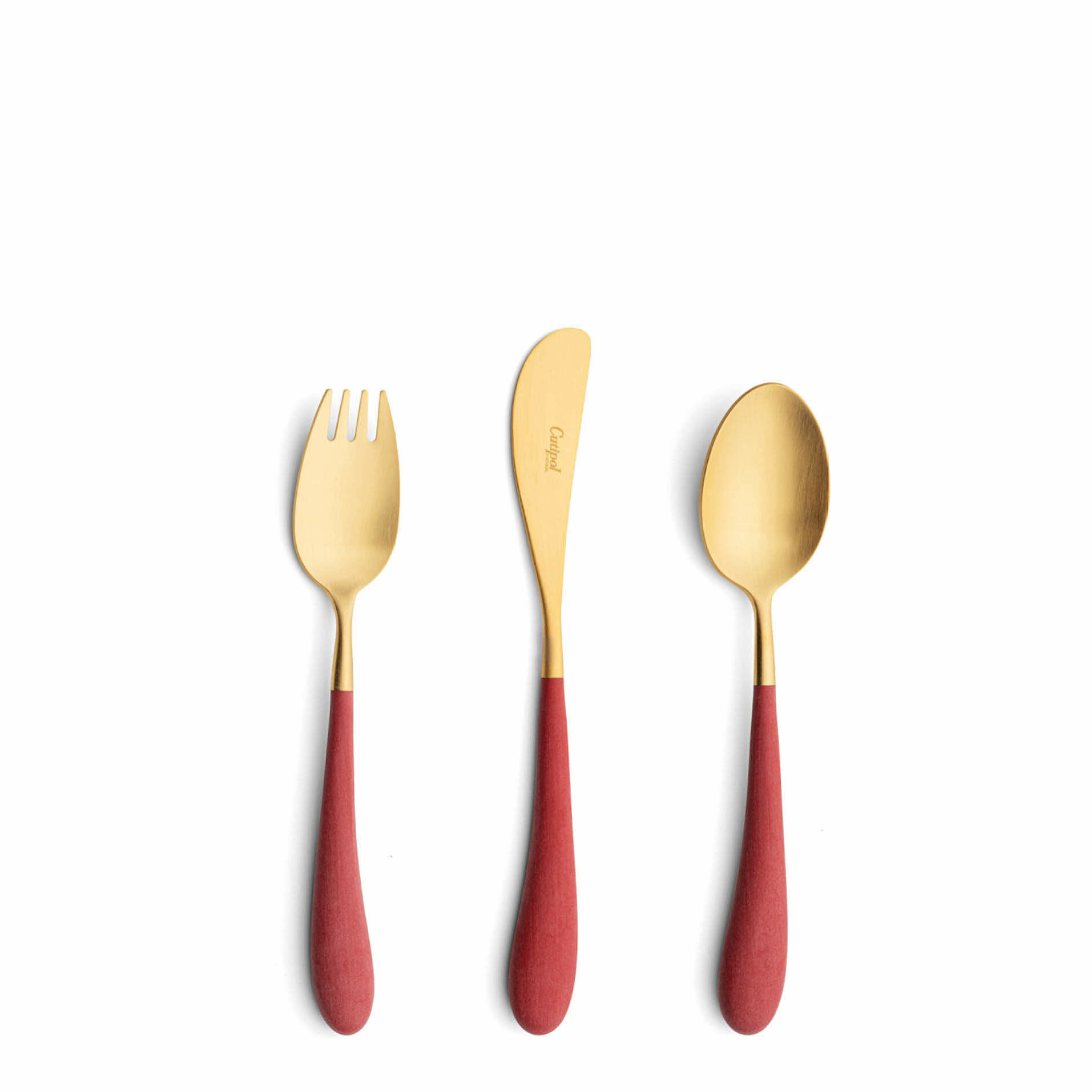 來自葡萄牙手工餐具Cutipol,推出受好評的兒童版本Alice系列,年節也推出紅柄金系列,堅持使用無毒的310不銹鋼,