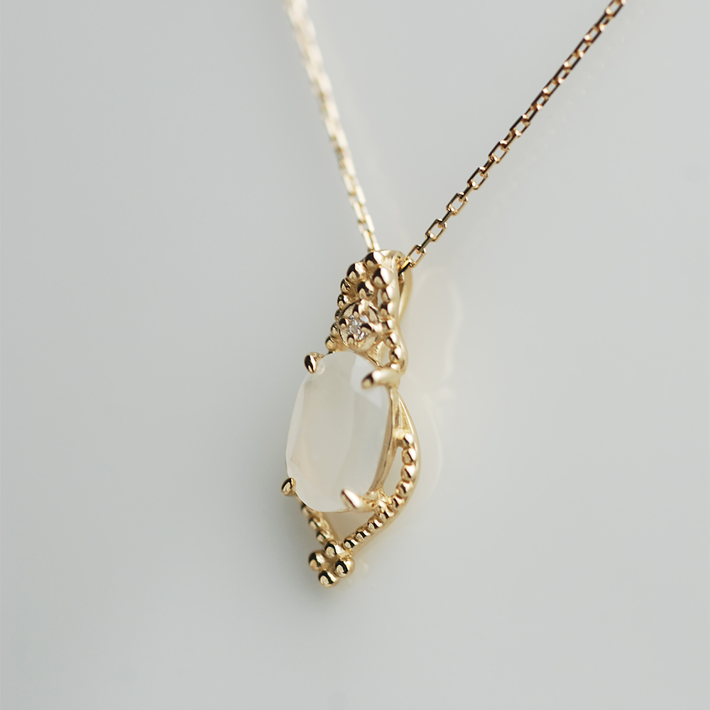Dinner-鑲珠長弧框月光石K金項鍊