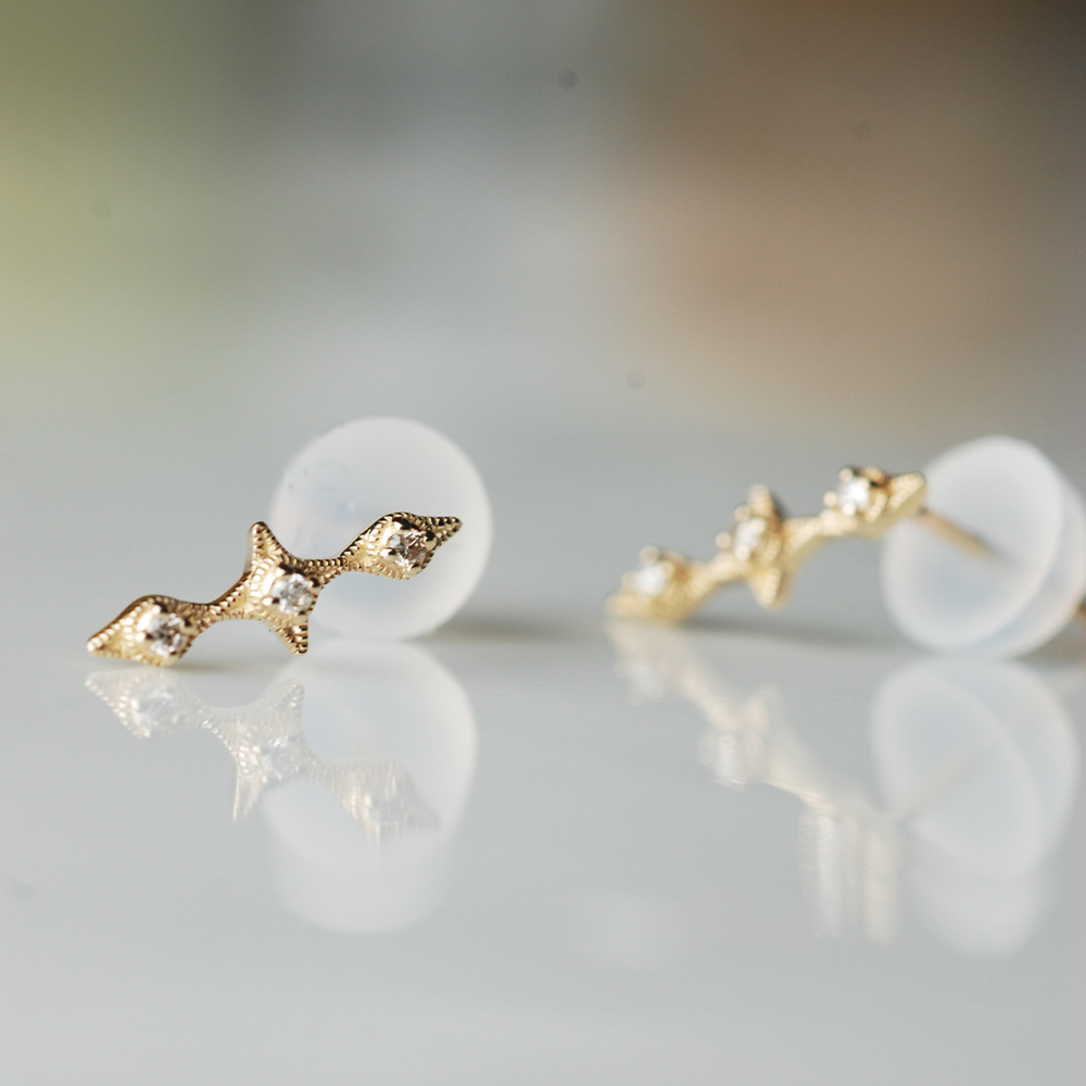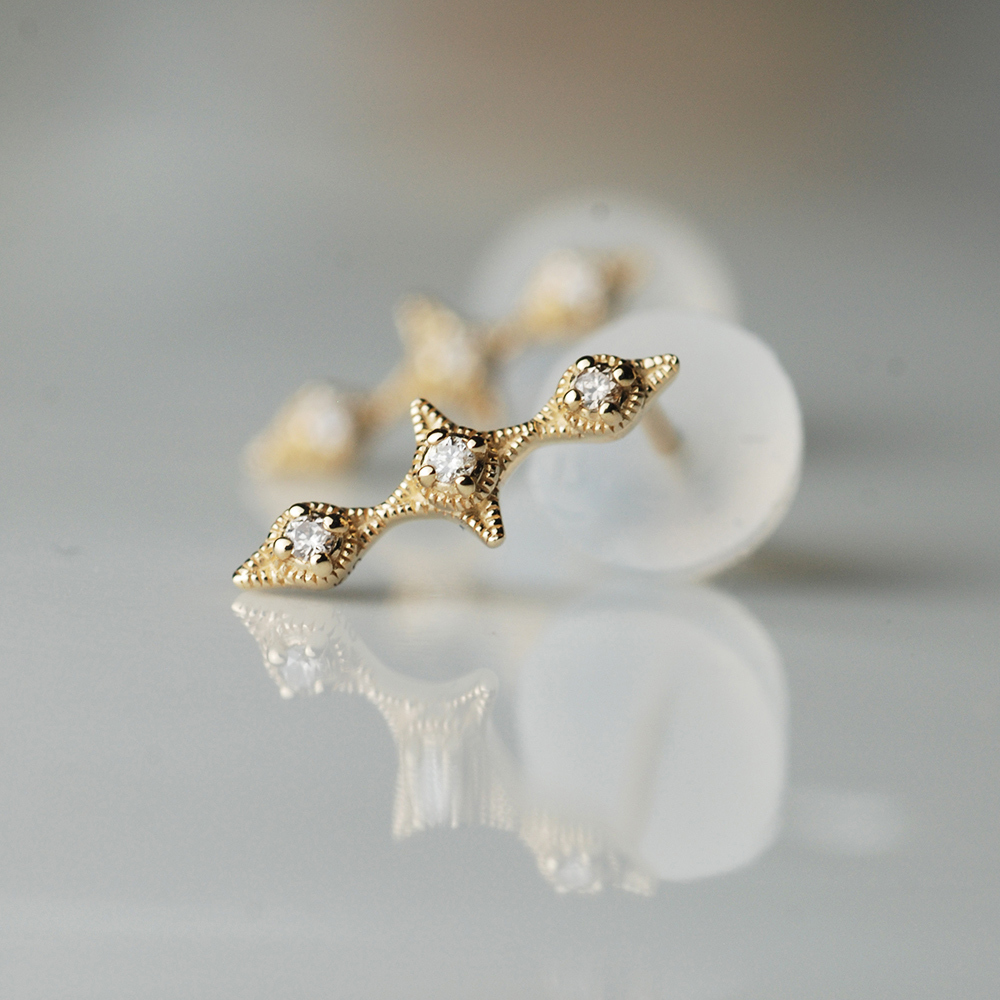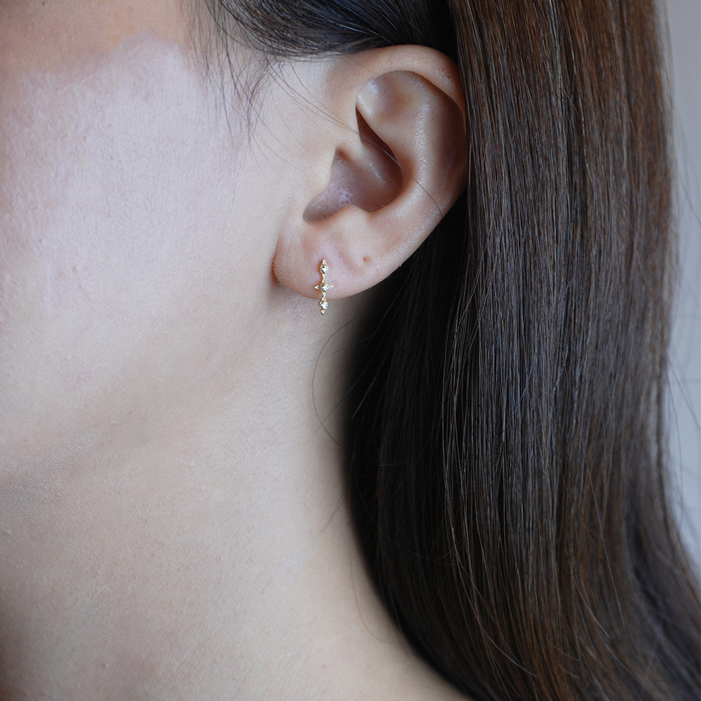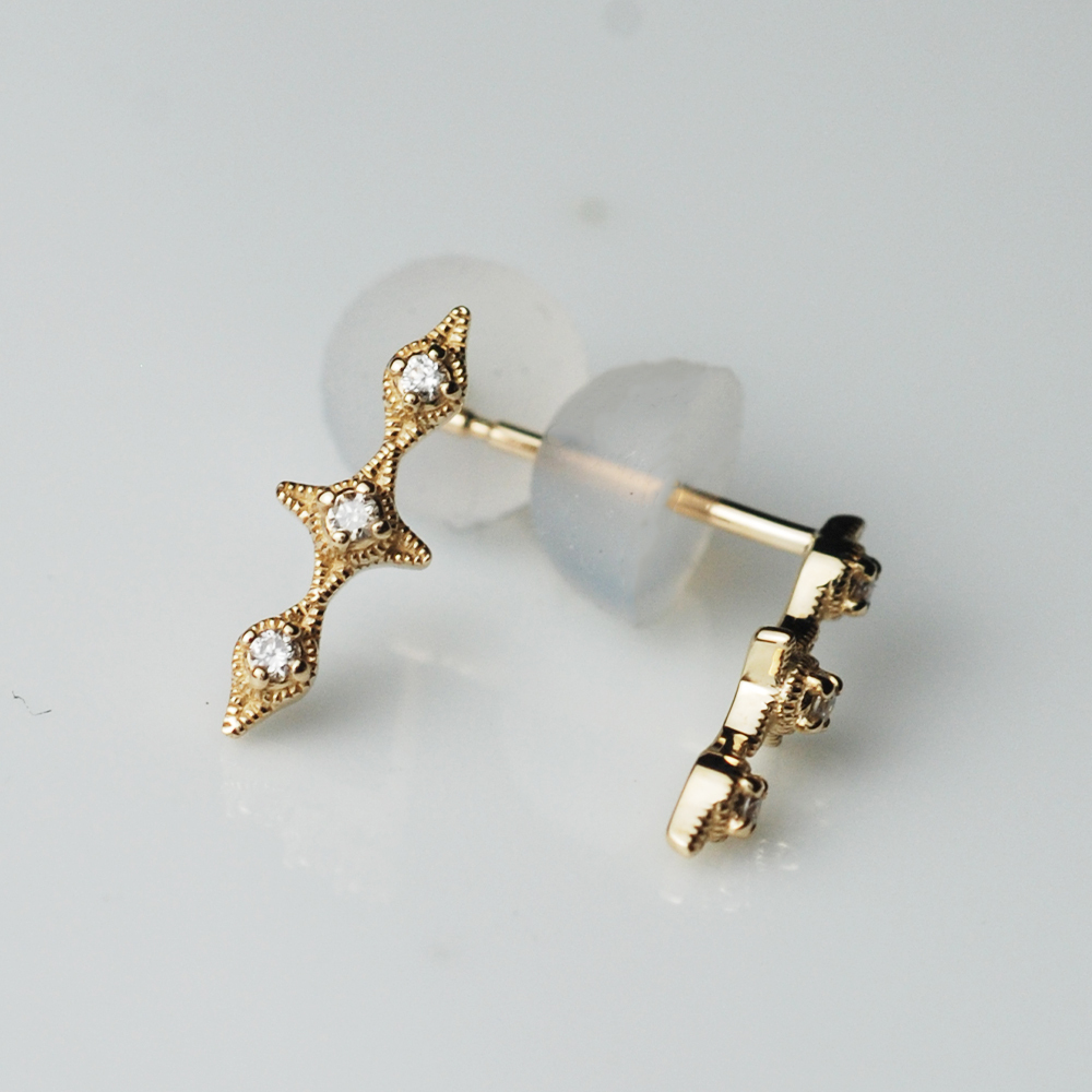 Dinner-3小鑽3菱型垂式K金耳環