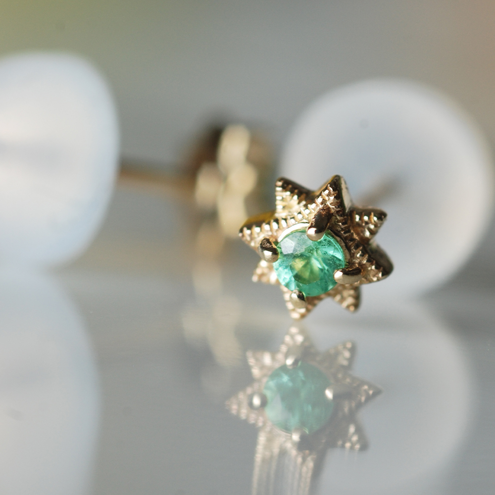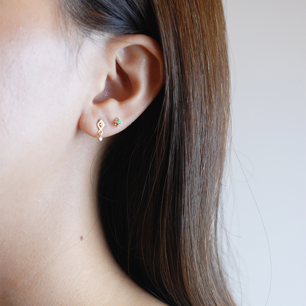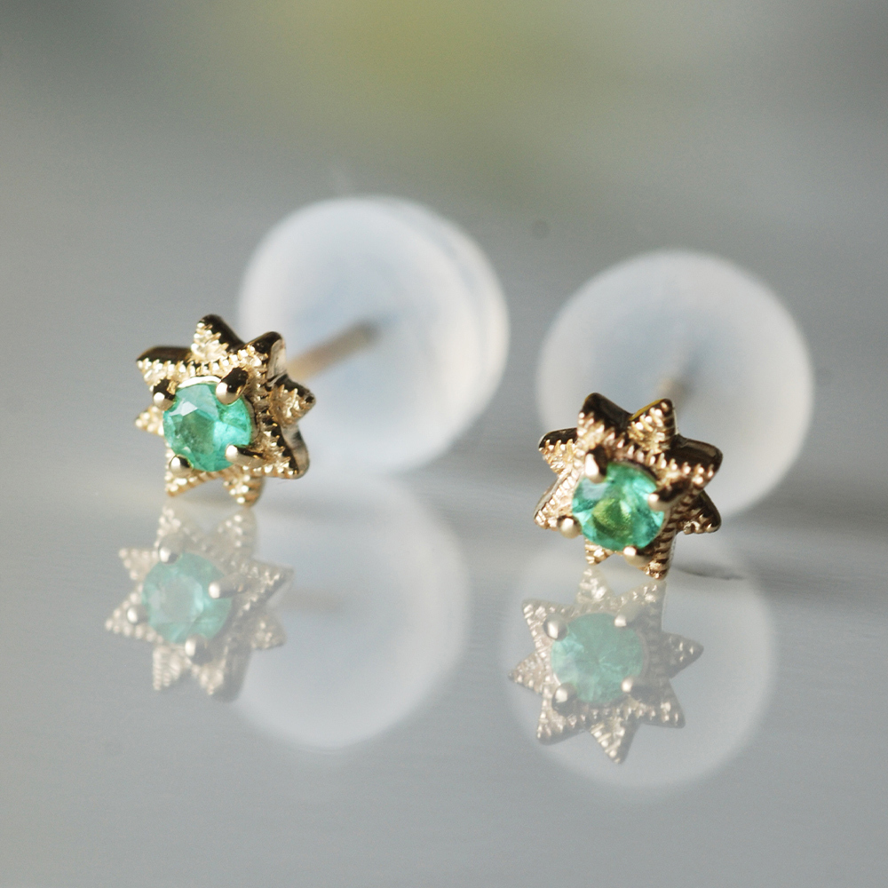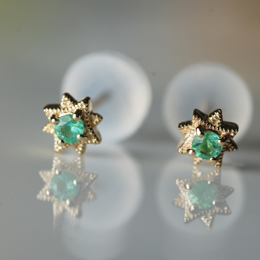 Dinner-八角星綠寶小鑽K金耳環