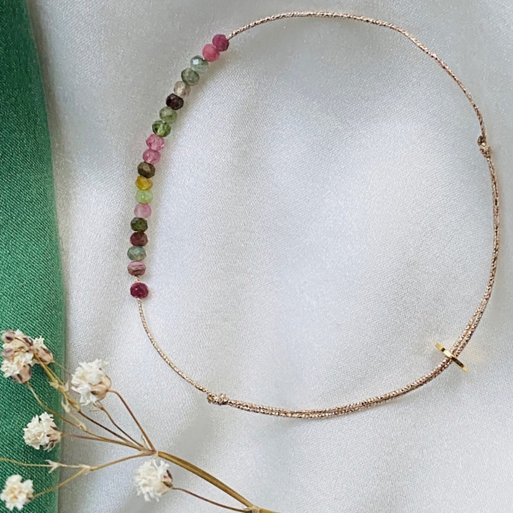 Dinner-多混色碧璽珠米金手鍊