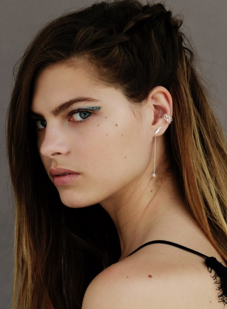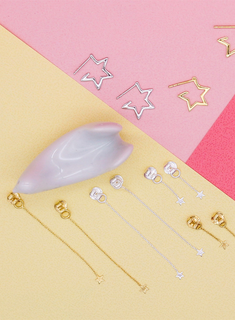Dinner-星星墜鏈銀色耳後掛-長鏈