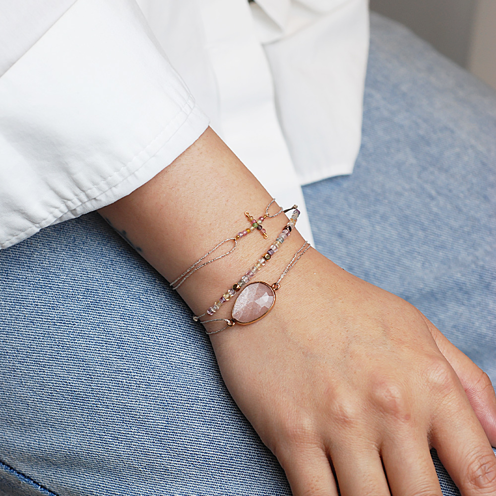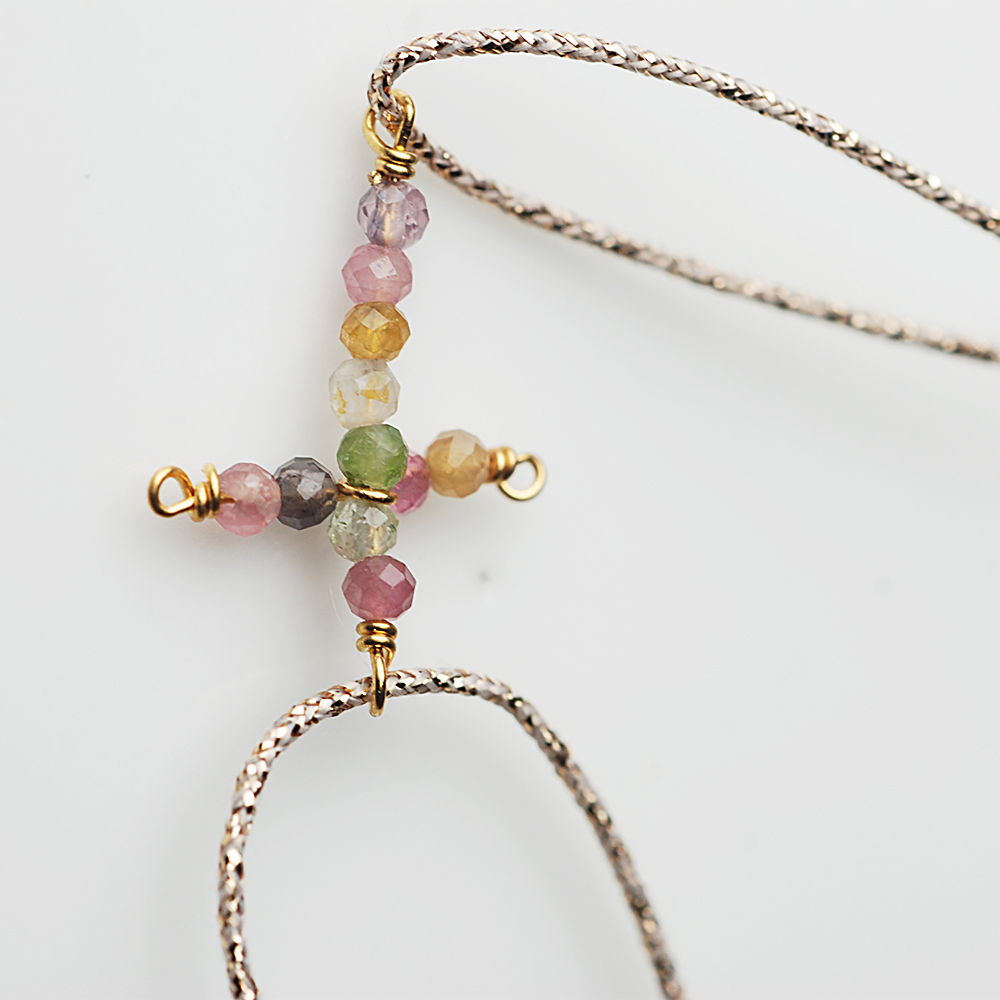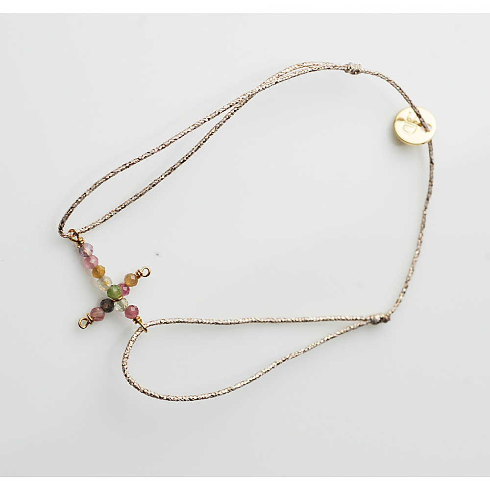 Dinner-混色碧璽十字架米金手鍊