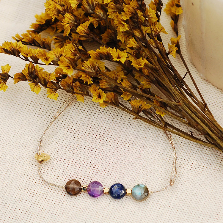 Dinner-灰紫藍灰寶石圓墜米金手鍊