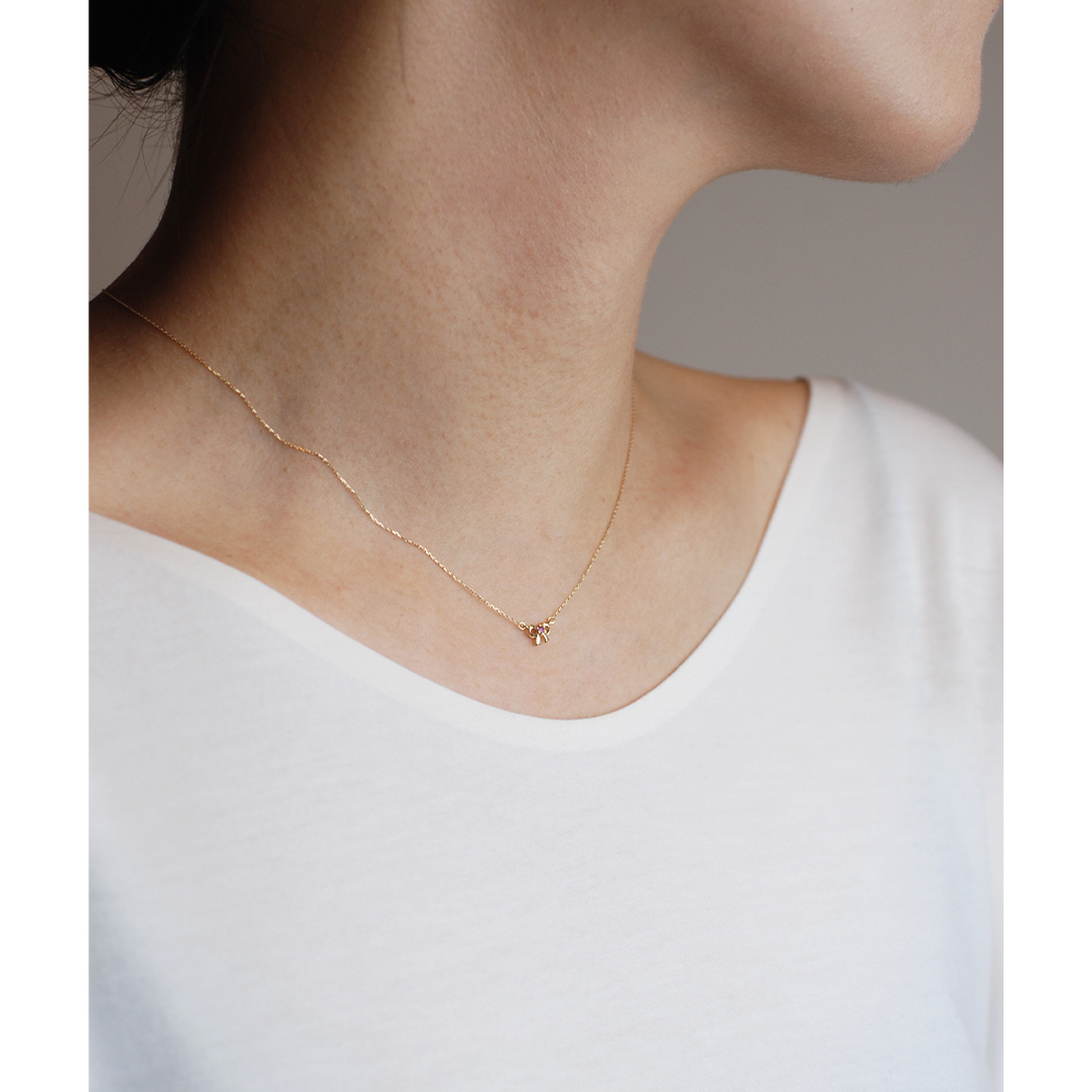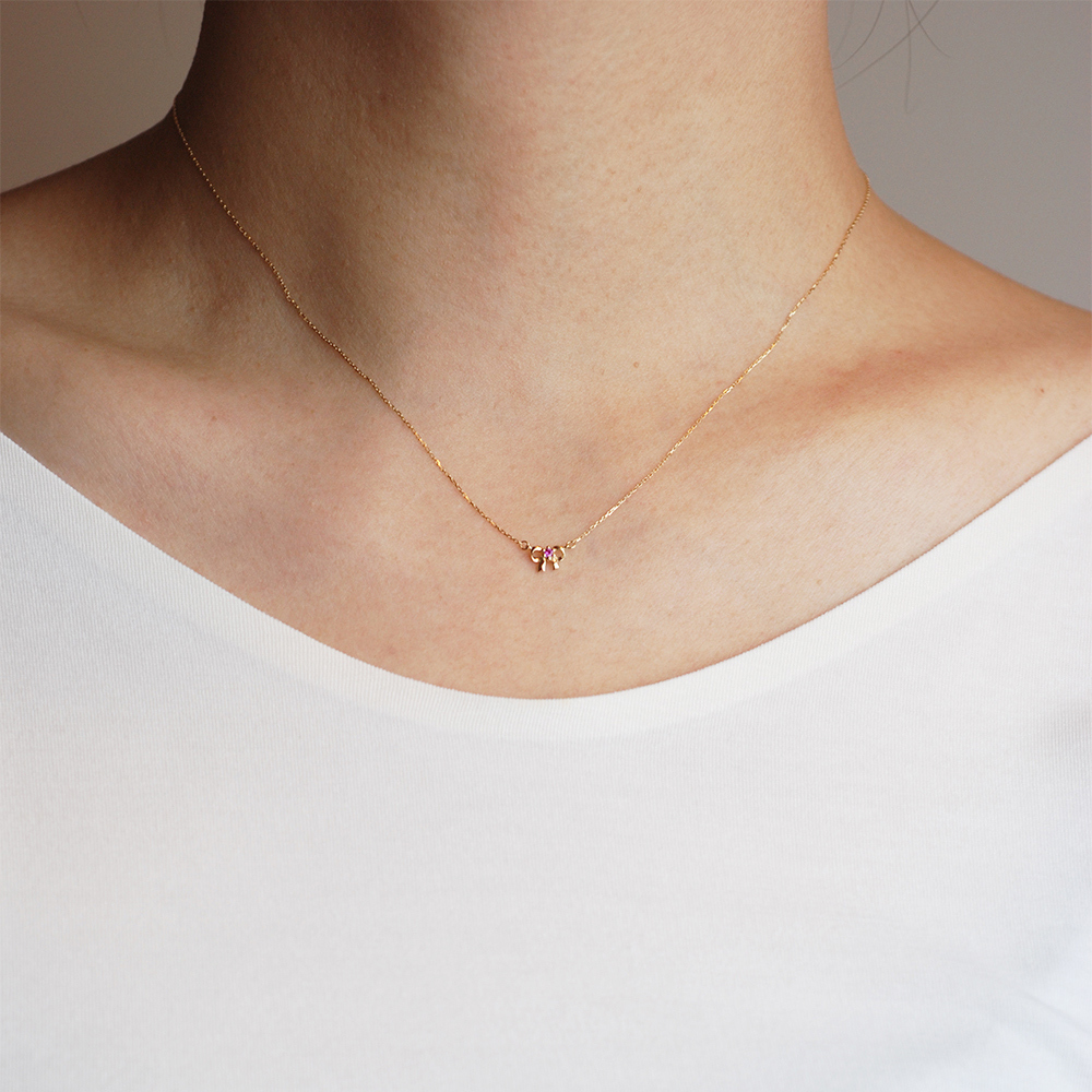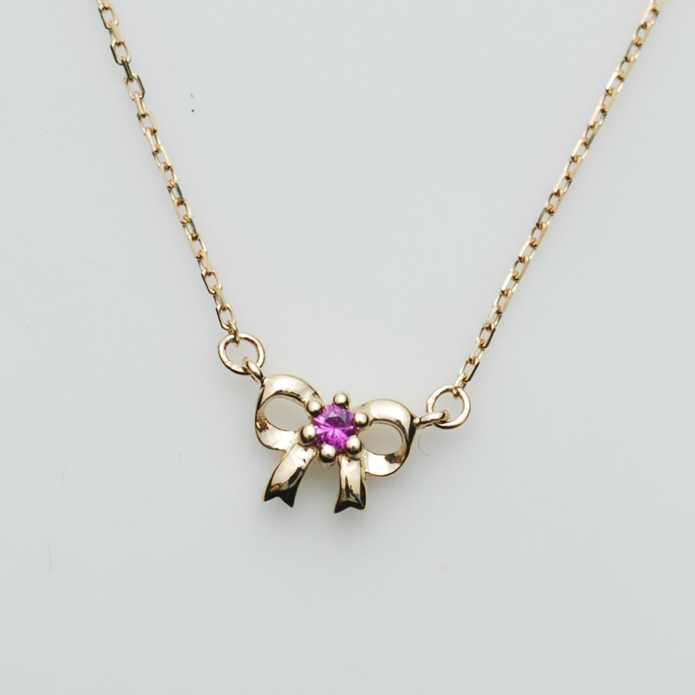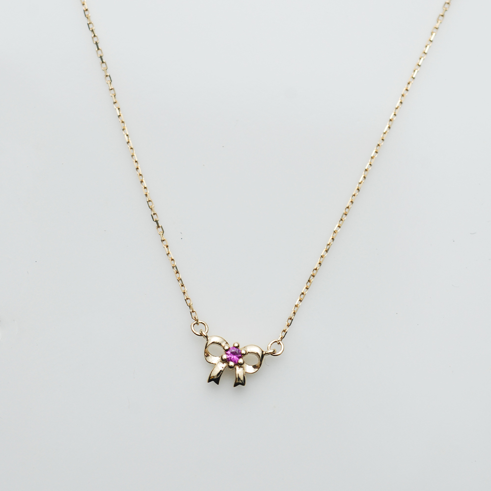 Dinner-蝴蝶結綴紅寶K金項鍊