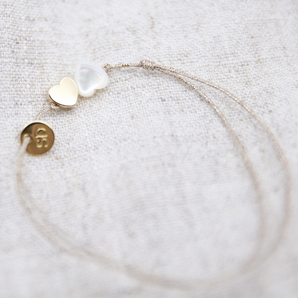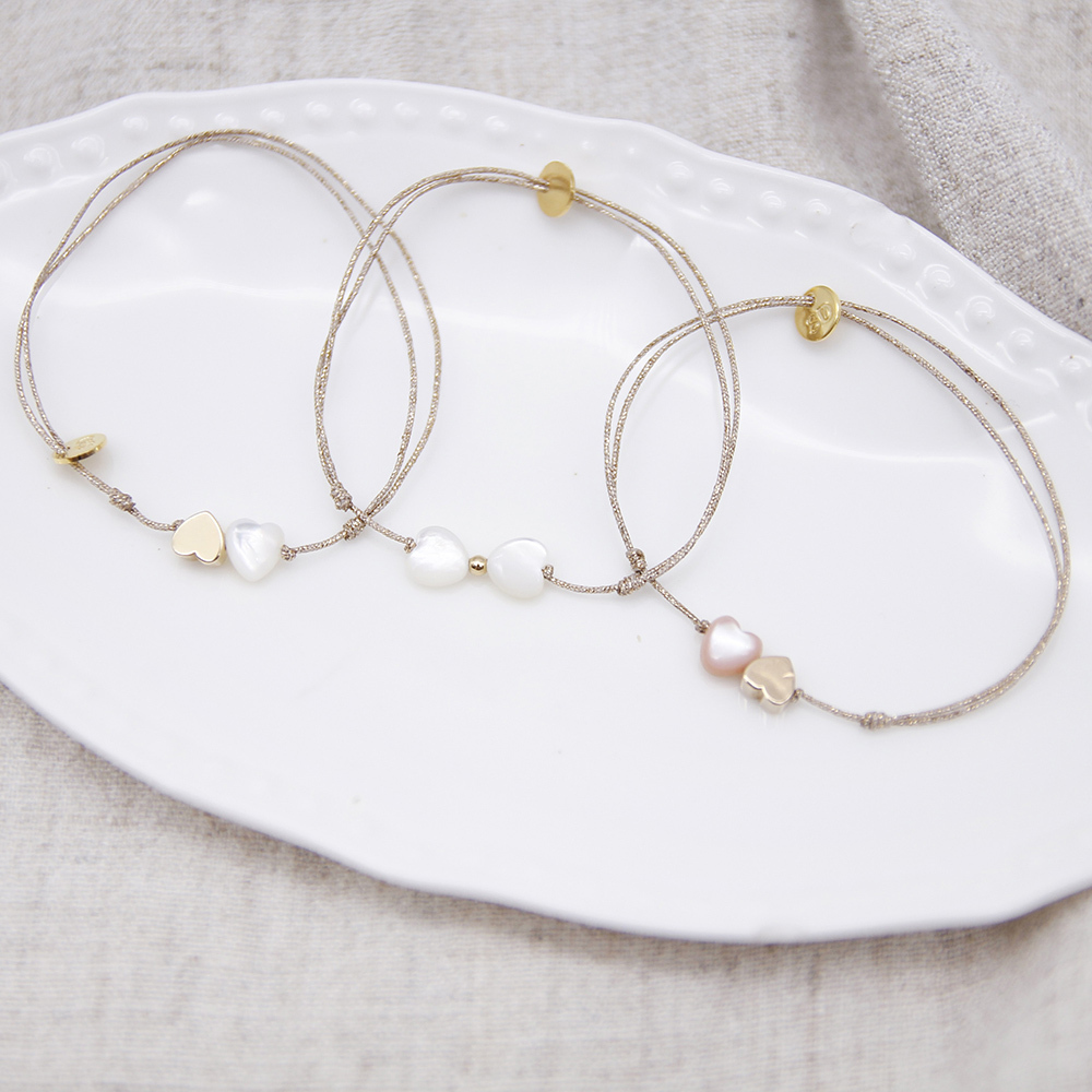 Dinner-雙愛心白母貝金墜手鍊