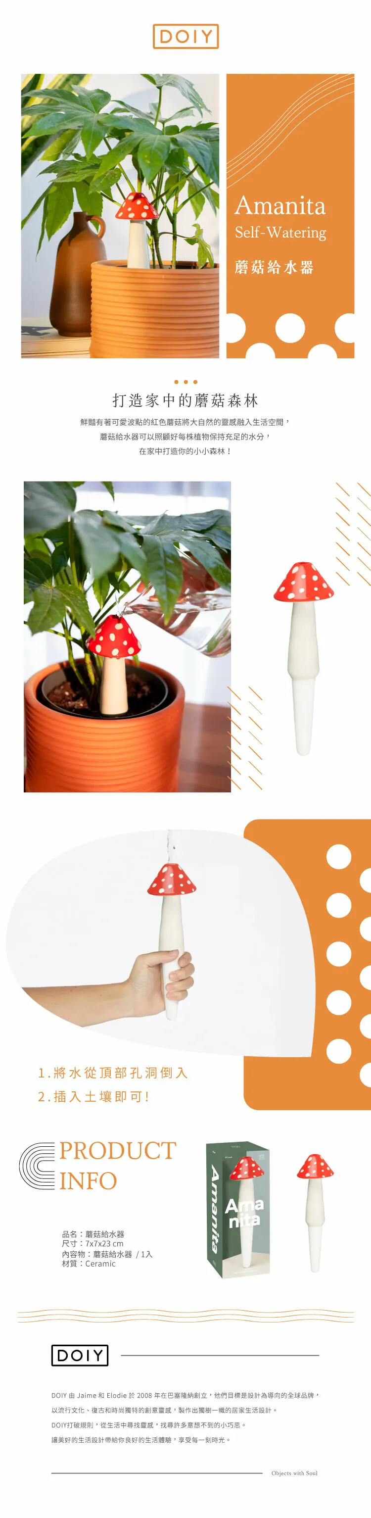 鮮豔有著可愛波點的紅色蘑菇將大自然的靈感融入生活空間,蘑菇給水器可以照顧好每株植物保持充足的水分,在家中打造你的小小森林!