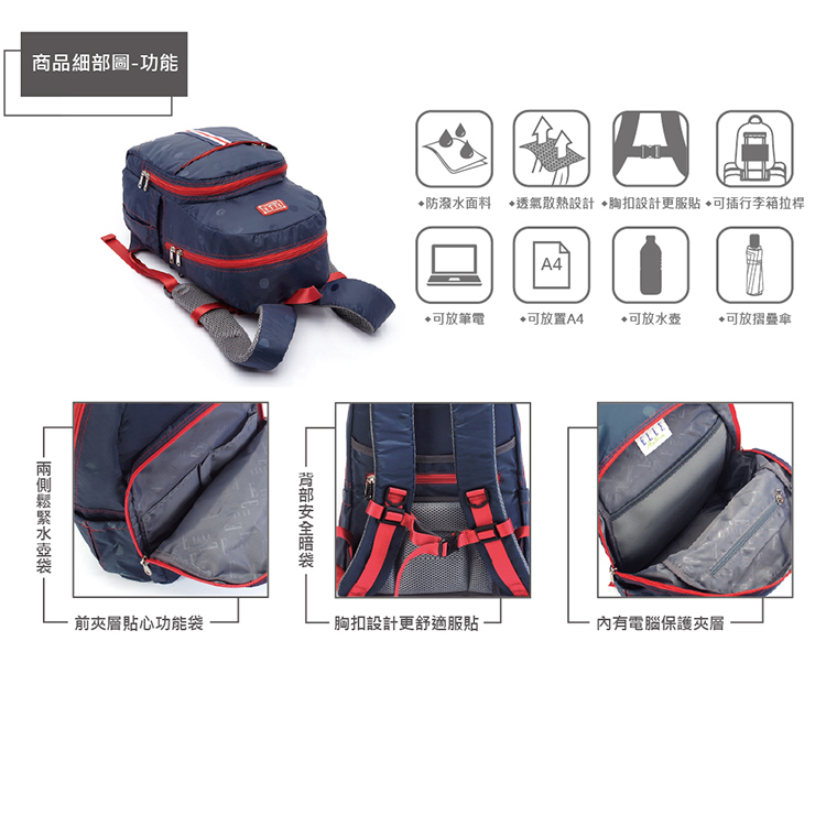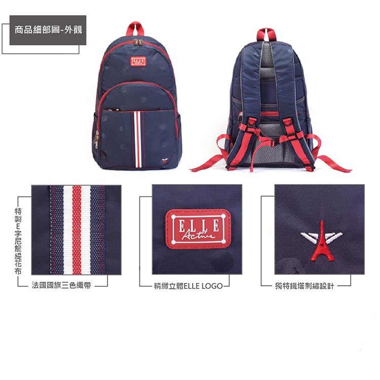 商品品名:【ELLE Active】經典復刻系列-後背包-大(藍色)