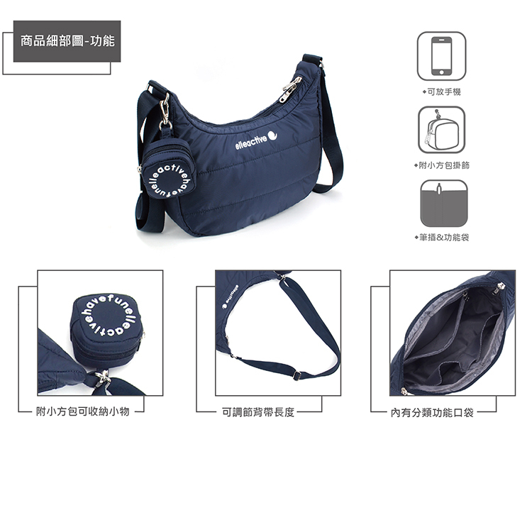 ★彎月弧形外觀,貼合身形,讓外出不單調。