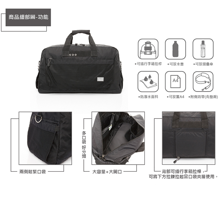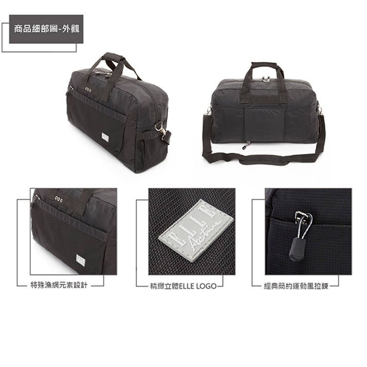 商品品名:【ELLE Active】Fish Net 漁網系列-旅行袋(黑色)