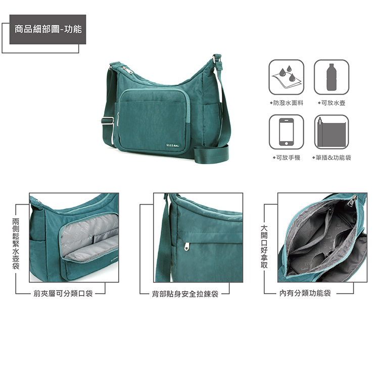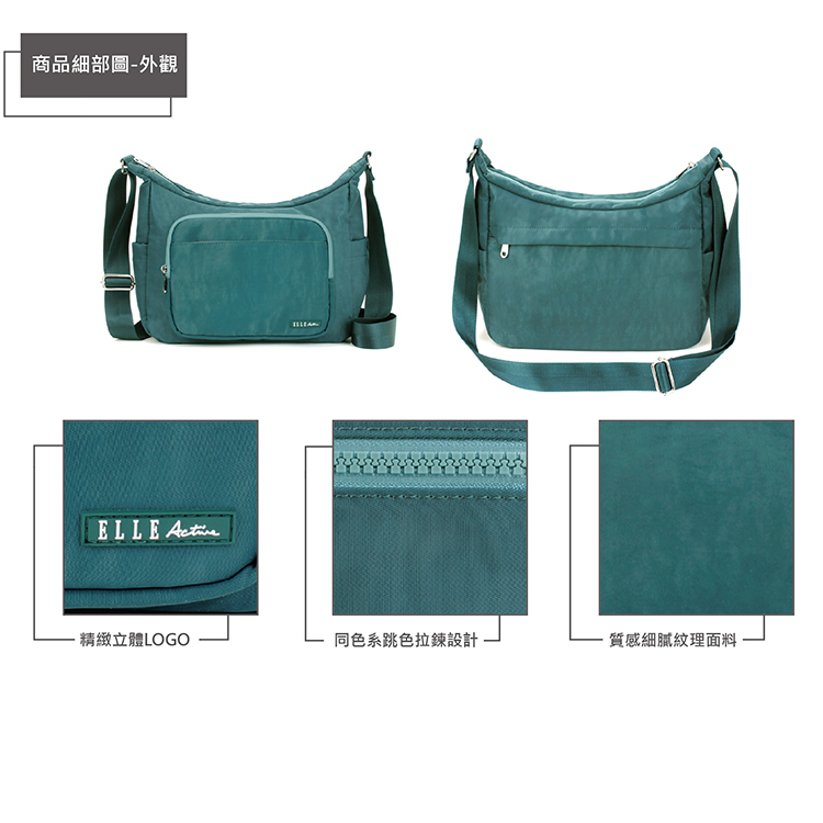 商品品名:【ELLE Active】悠遊漫步系列-側背包/斜背包-大-綠色