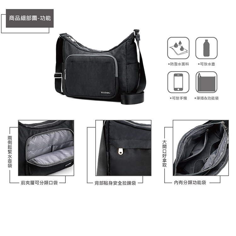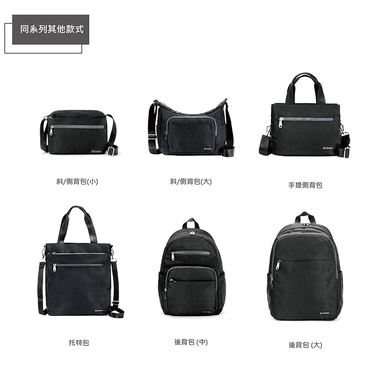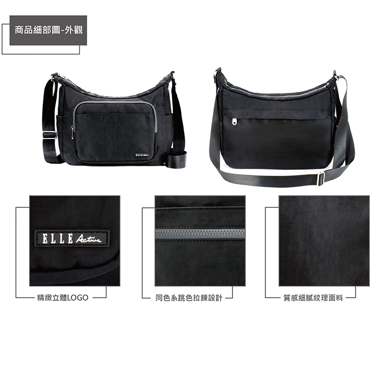 商品品名:【ELLE Active】悠遊漫步系列-側背包/斜背包-大-黑色