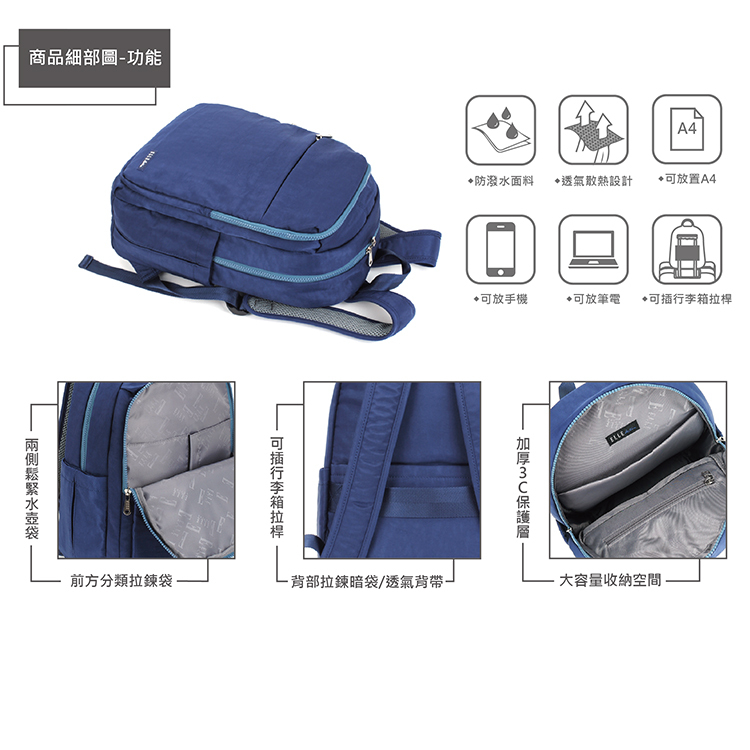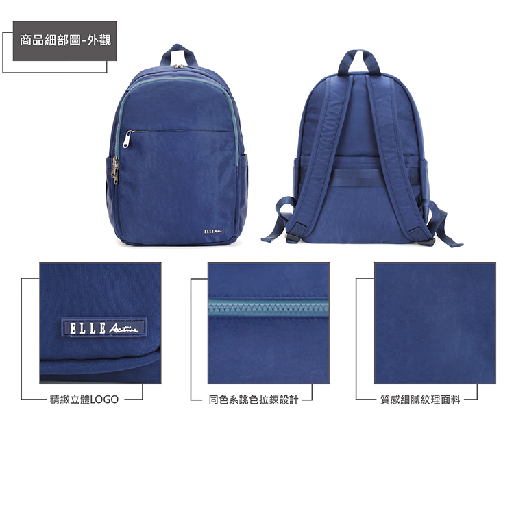 商品品名:【ELLE Active】悠遊漫步系列-後背包-大-藍色