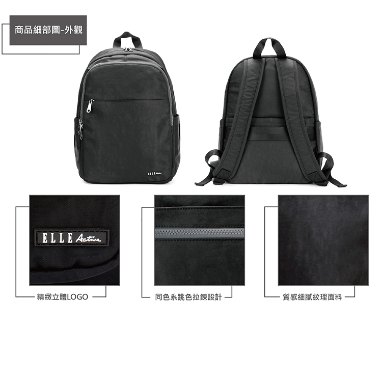 商品品名:【ELLE Active】悠遊漫步系列-後背包-大-黑色