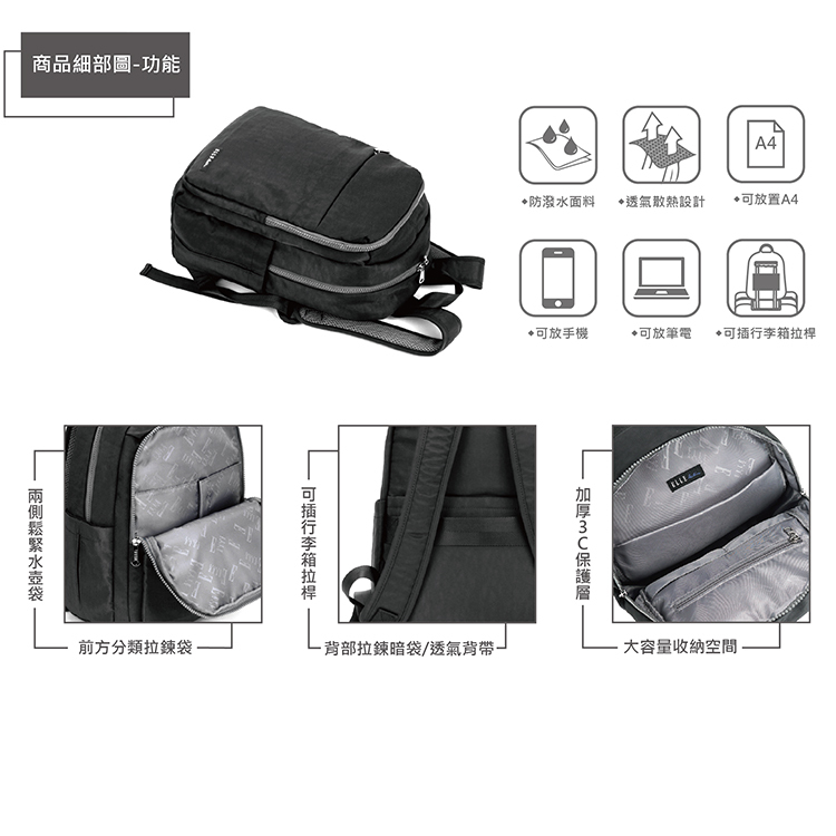 A4文件-可;可放筆電-可;插拉桿功能-可
