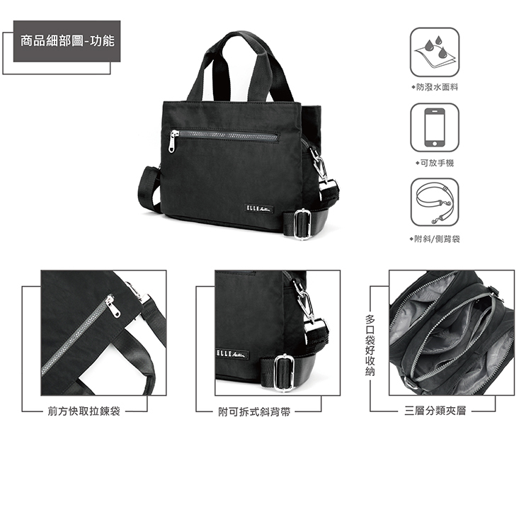 商品品名:【ELLE Active】悠遊漫步系列-側背包/斜背包-小-黑色