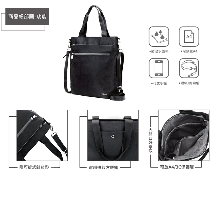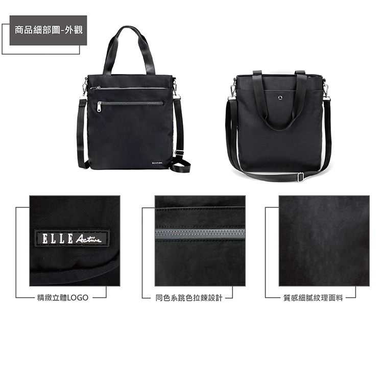 商品品名:【ELLE Active】悠遊漫步系列-托特包/購物袋-黑色