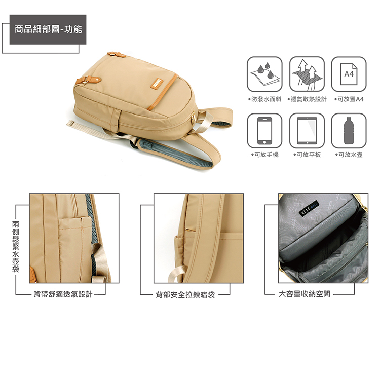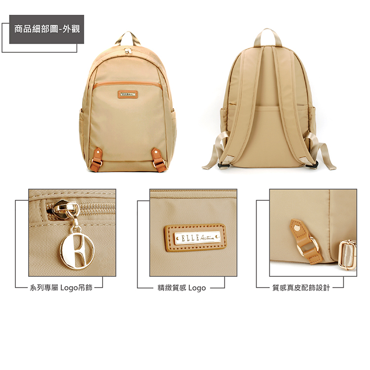 商品品名:【ELLE Active】法式香頌系列-後背包-卡其色