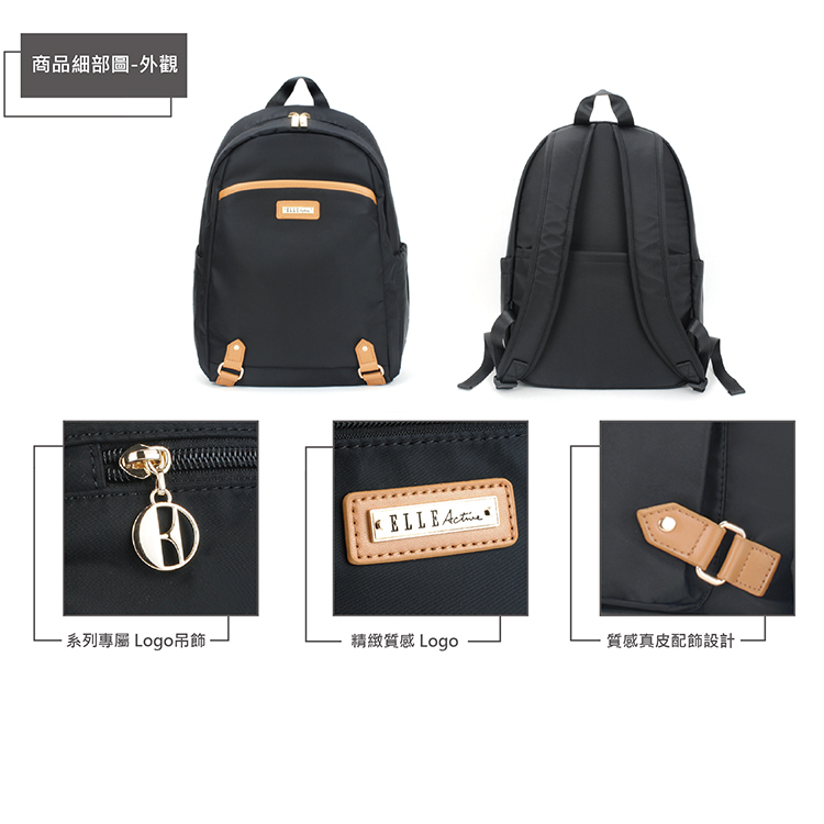 商品品名:【ELLE Active】法式香頌系列-後背包-黑色