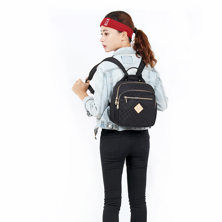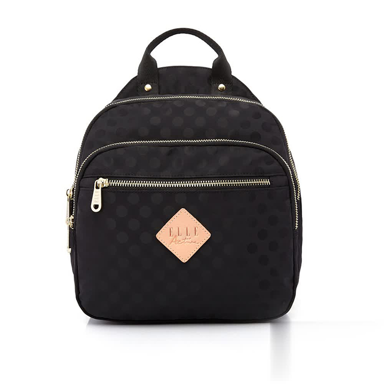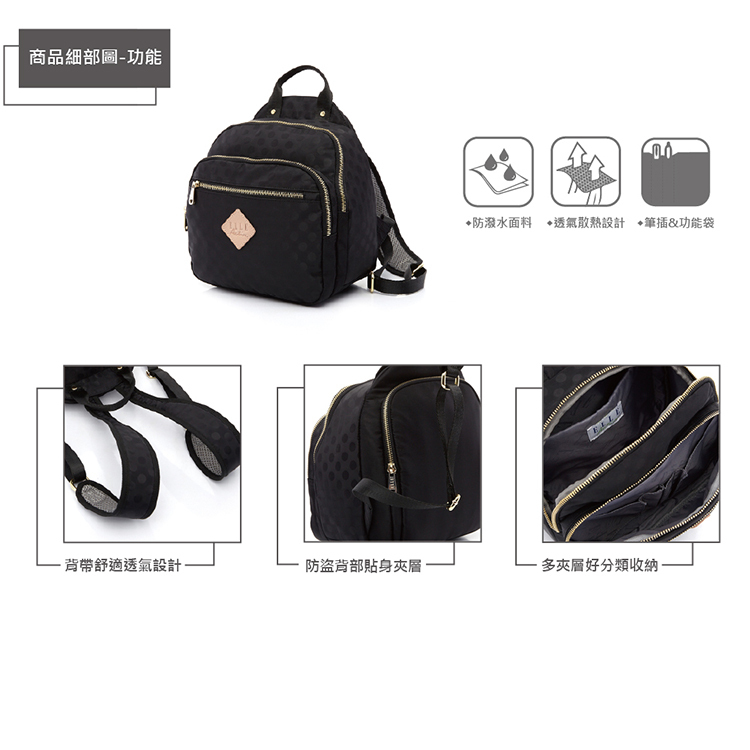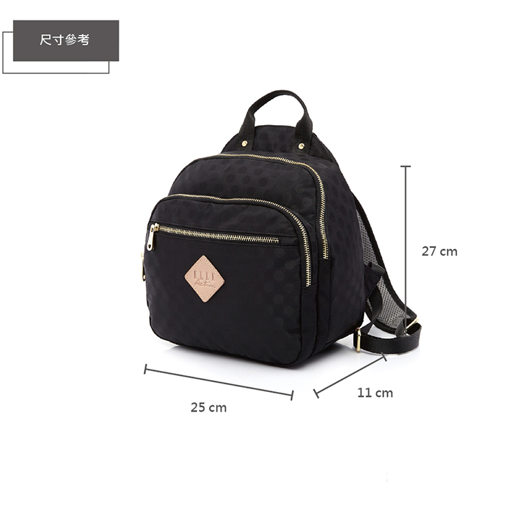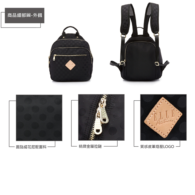 【ELLE Active】波卡圓點系列-防盜 小後背包-黑色