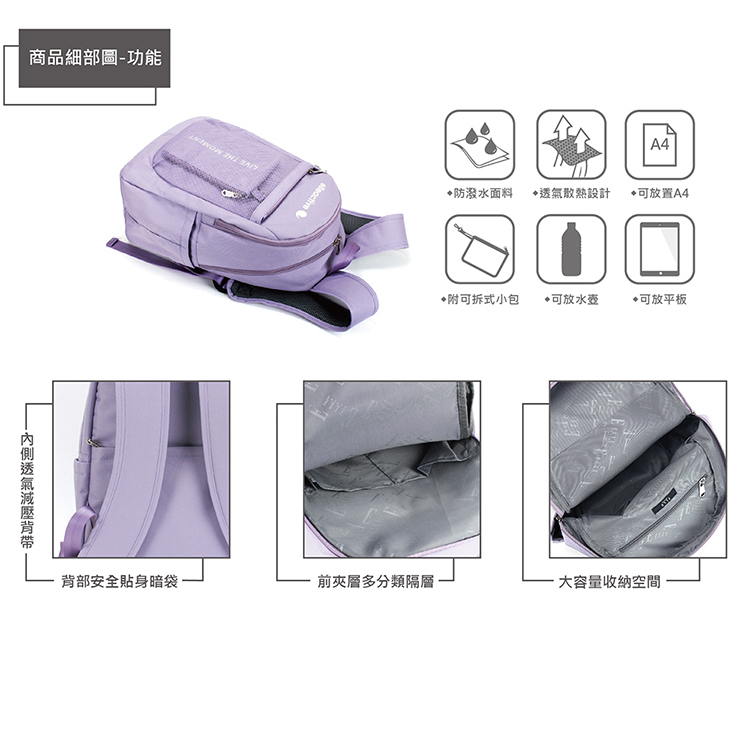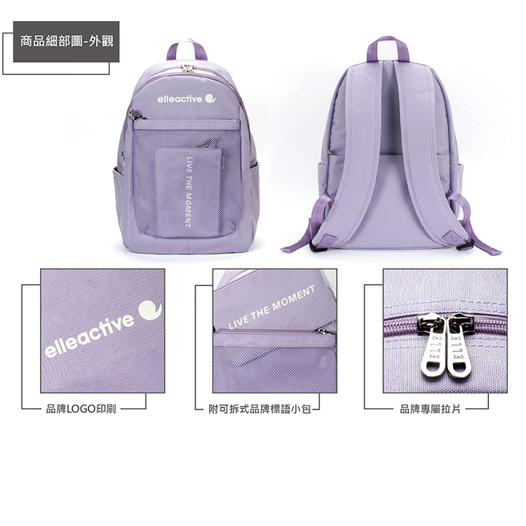 商品品名:【ELLE Active】活力隨行系列-後背包-中-紫色