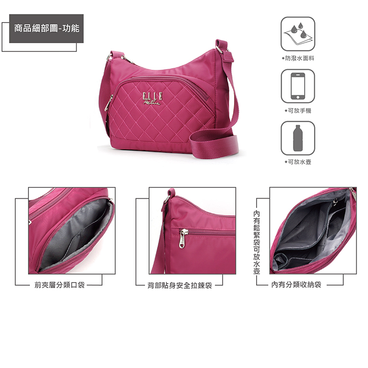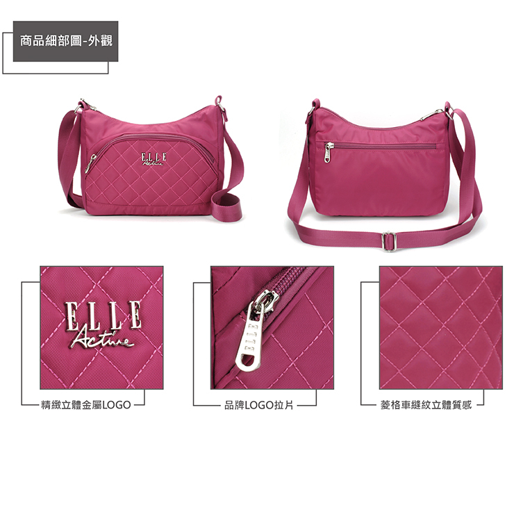 商品品名:【ELLE Active】生活印記系列-側背包/斜背包-大-桃紅色